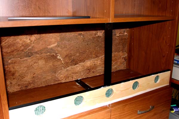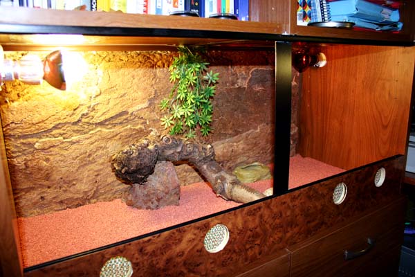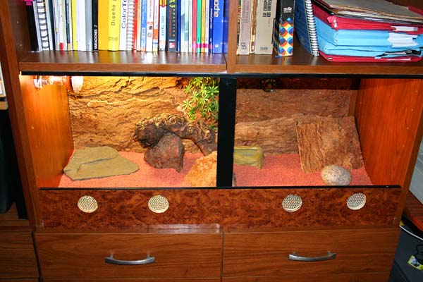 Mi Pogona ya ha crecido y no cabe donde la tenia así que esta semana empiezo con la conversión de dos estanterías del mueble en un terrario desértico.