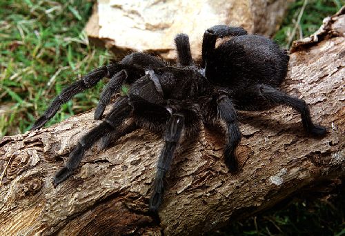 Por otro lado para aquellos que no conozcan esta espcie, Grammostola molicoma, un hrmoso animal, totalmente negro, con plos tornasolados en el dorso del cefalotórax, que habita unicamente en Uruguay.Tuve la posibilidad de criarlas y aparearlas, son ralmnte "sociables" y nada pligrosas, todo un ejmplo de Thraphosida...