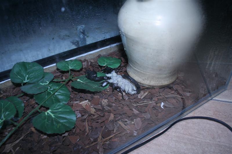 La naturaleza no deja de sorprenderme. Mi Pandinus imperator ha tenido recientemente unas 17 crias. Leyendo varios post me había forjado la idea de que si alguna de ellas caia del lomo de su madre se podía dar por muerta. Cual ha sido mi sorpresa al ver por dos veces como la madre ayuda a una cria a subir a su espalda con sus pedipalpos. Demuestra un cuidado e instinto maternal que creia inexistente en los escorpiones. Es realmente enternecedor.