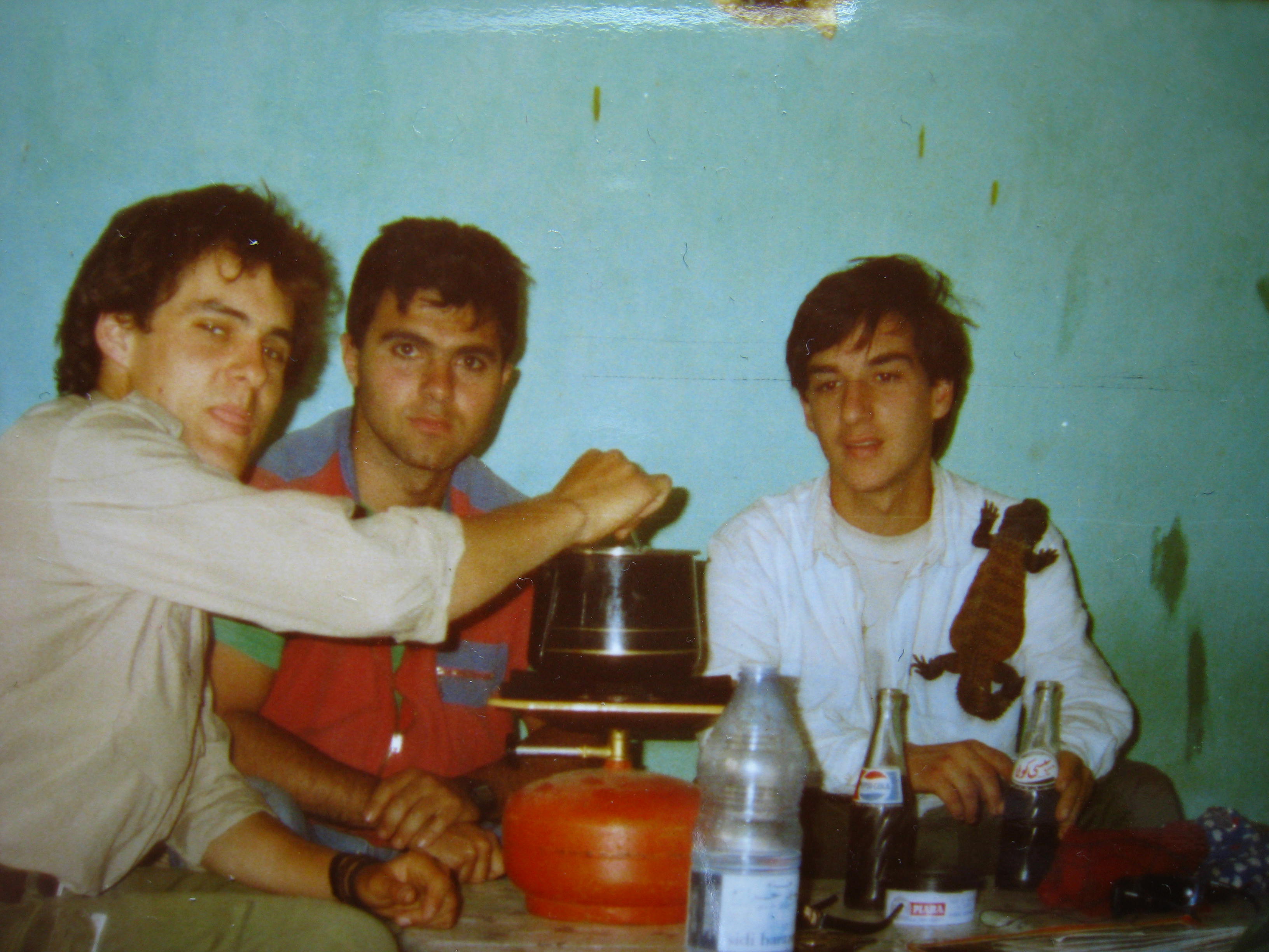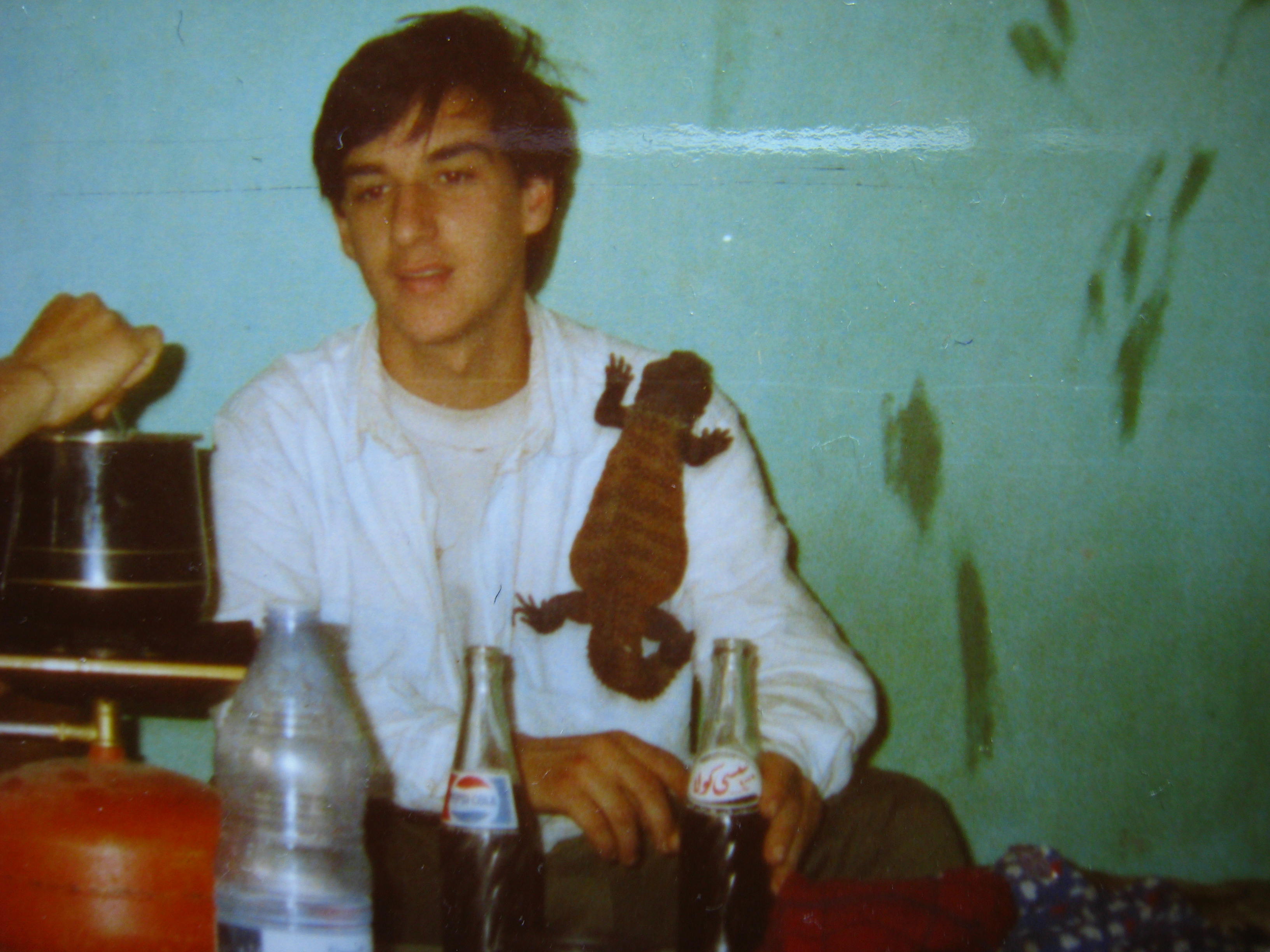 Mirando por los albunes de mi junventud,(jejeje a los 41 lo veo lejano)he encontrado esta foto de mi viaje a Maruecos, estamos cenando en el CAfe Du Sub de Mezohuga ,mi amigo Juan, mi amigo Marcos y yo, fijaros en el pedazo de Uromastix acantinurus que tengo en el hombro , es simplemente alucinante.