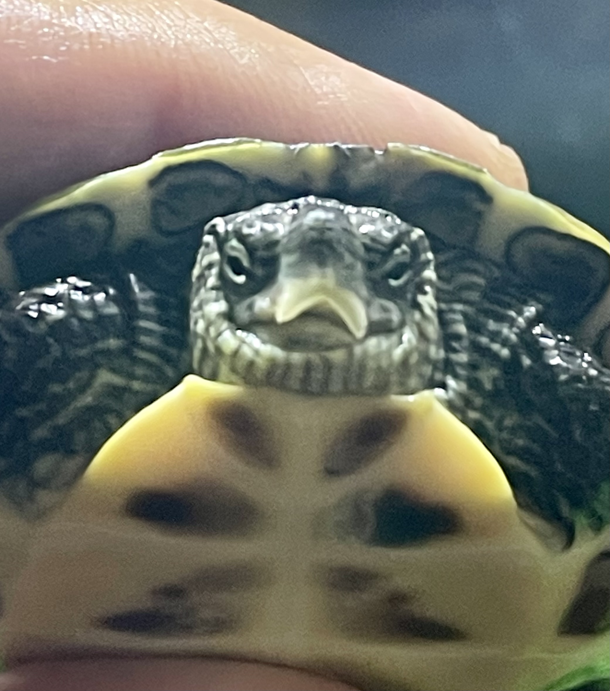 Ocadia de un año aproximadamente, deja de comer, después de una semana de ayuno empiezo a inspeccionar y veo algo raro en el pico, me la miro y sorpresa! Me quedo con la parte inferior del pico en la mano.
