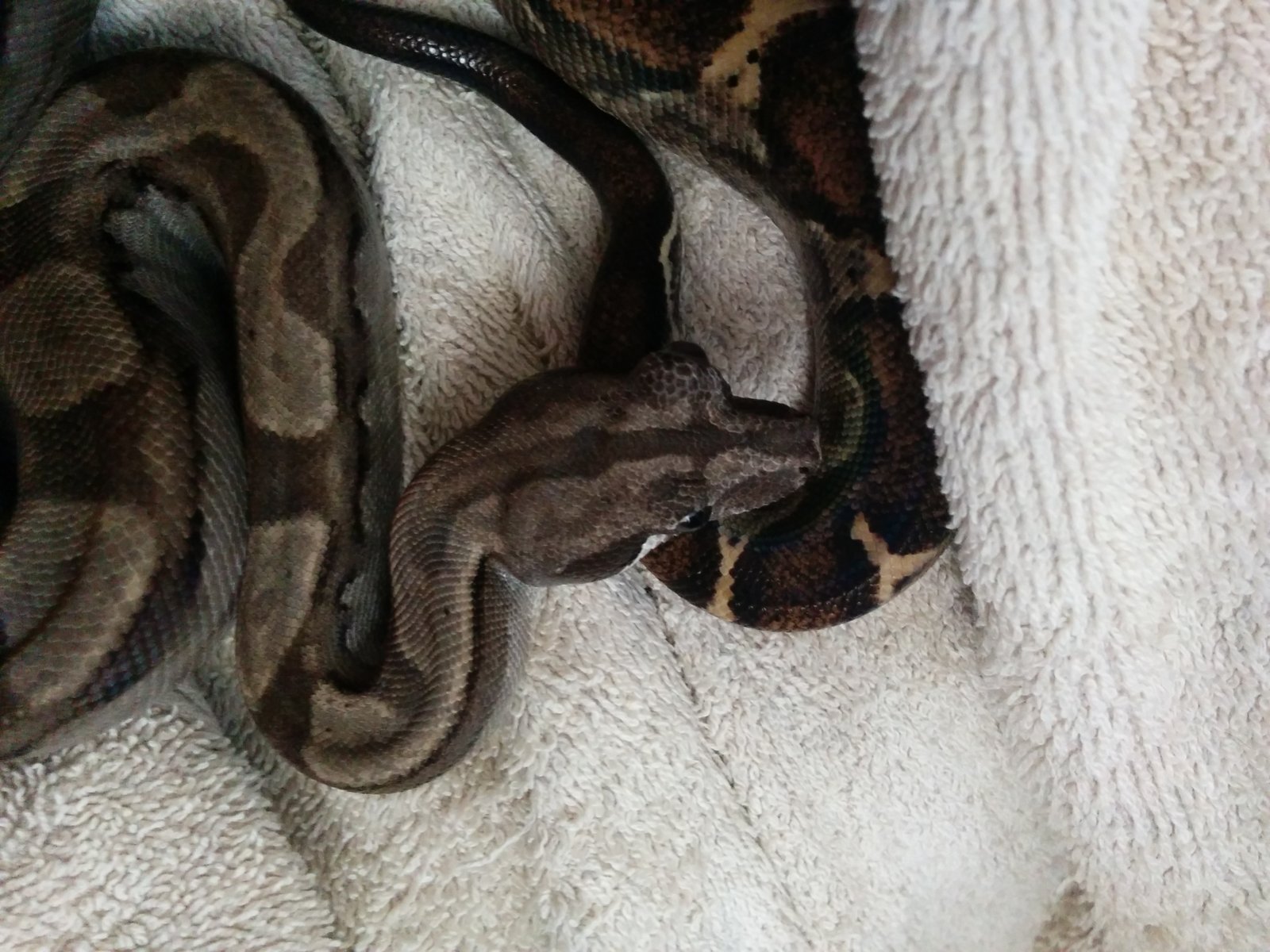 Mi boa de 8 meses tuvo un problema en su ojo izquierdo hace poco más de un mes. Se le hinchó de la noche a la mañana. Mirándola de cerca estaba claro que el ojo estaba bien y reaccionaba a la luz, pero tenía fluido acumulado entre el ojo y la membrana que lo cubre. El fluido era transparente. El veterinario lo drenó después de no poder encontrar que causaba la obstrucción del lacrimal. A los pocos días la situación se repitió y lo volvió a drenar. Esto pasó 4 veces hasta que una de ellas la membrana se rompió sola. Estuvo una semana con gotas antibióticas y el ojo seguía drenando. Después de mudar el ojo tiene la membrana intacta y no se ha vuelto a hinchar. Su comportamiento durante todo el tiempo ha sido normal y no ha tenido problemas para comer.