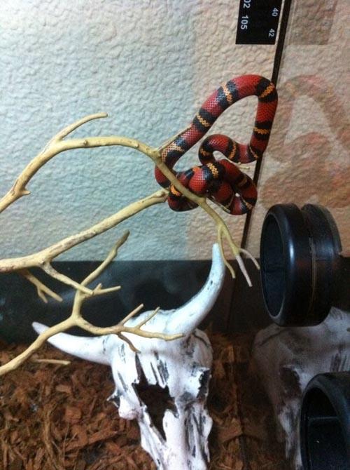 Hace algo mas de un mes mi chico y yo compramos esta preciosidad. Es una lampropeltis triangulum hondurensis tangerine