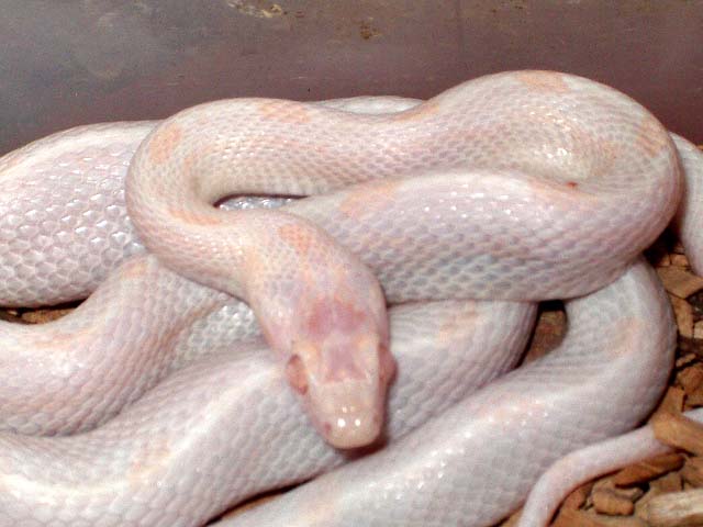 Sin embargo hay otras cali que vienen de la linea de las high-yellow y las high-white que son serpientes paracticamente blancas en las que se ha eliminado casi por completo el negro. Esas serpientes son un 99% blancas y 1% negras, pero no son albinas. El blanco es producido por el pigmento blanco de que tienen las californiaes. Mientas que la blizzard de la foto, el blanco rosado que tienen es producto de la ausencia de pigmento negro en una albina de una cali casi negra. Osea que realmente una snow de una blizzard seria lo opuesto, una tienen mucho pigemnto blanco y otras no tienen apenas, lo que pasa es que las que apenas tienen al ser albinas aparecen como balncas