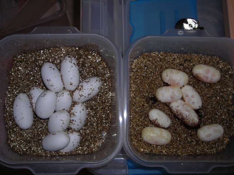 Increible, las fotos son dignas de un libro sobre reproducción en reptiles. A ver si hay suerte y entre las dos puestas sale el macho anery lineal :). Que la primera se esta haciendo muxo de esperar:).
