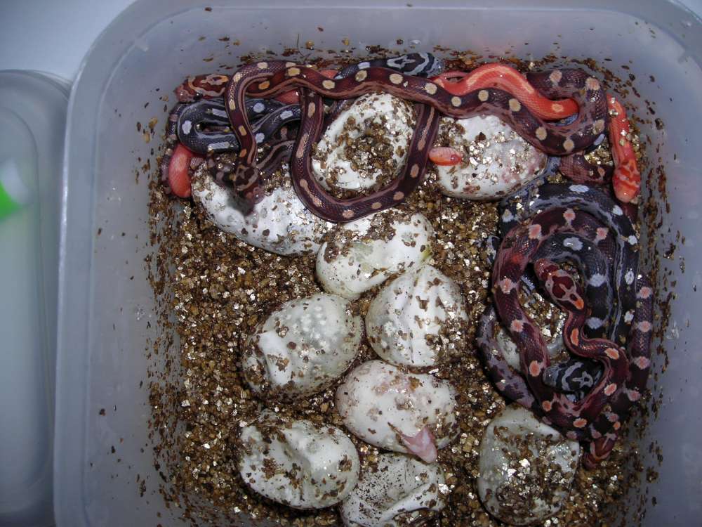 Yo habia leido y habia visto manchas en huevos pero tan marcadas jamas por lo menos entre las lampropeltis. Que pasada !.