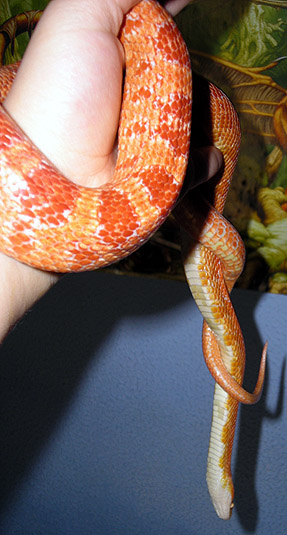 Esta mañana me llegó, mide como 1 metro y supuestamente es hembra, va a mudar así que ahora mismo no tengo prisa por darle de comer, pero... qué tamaño de ratones debo darle?