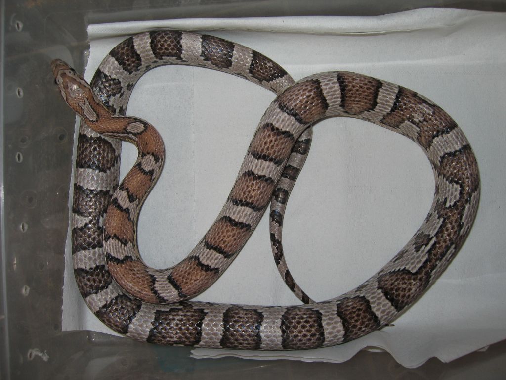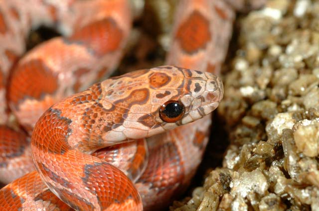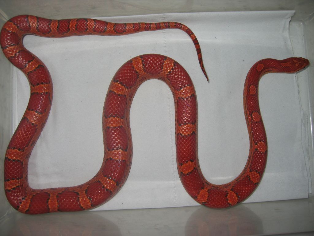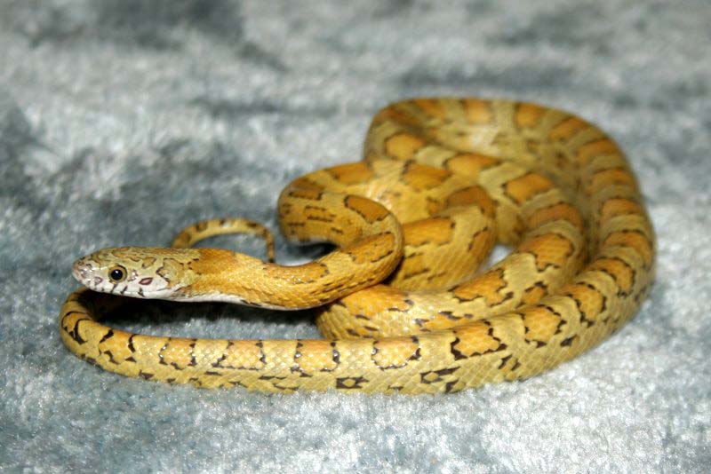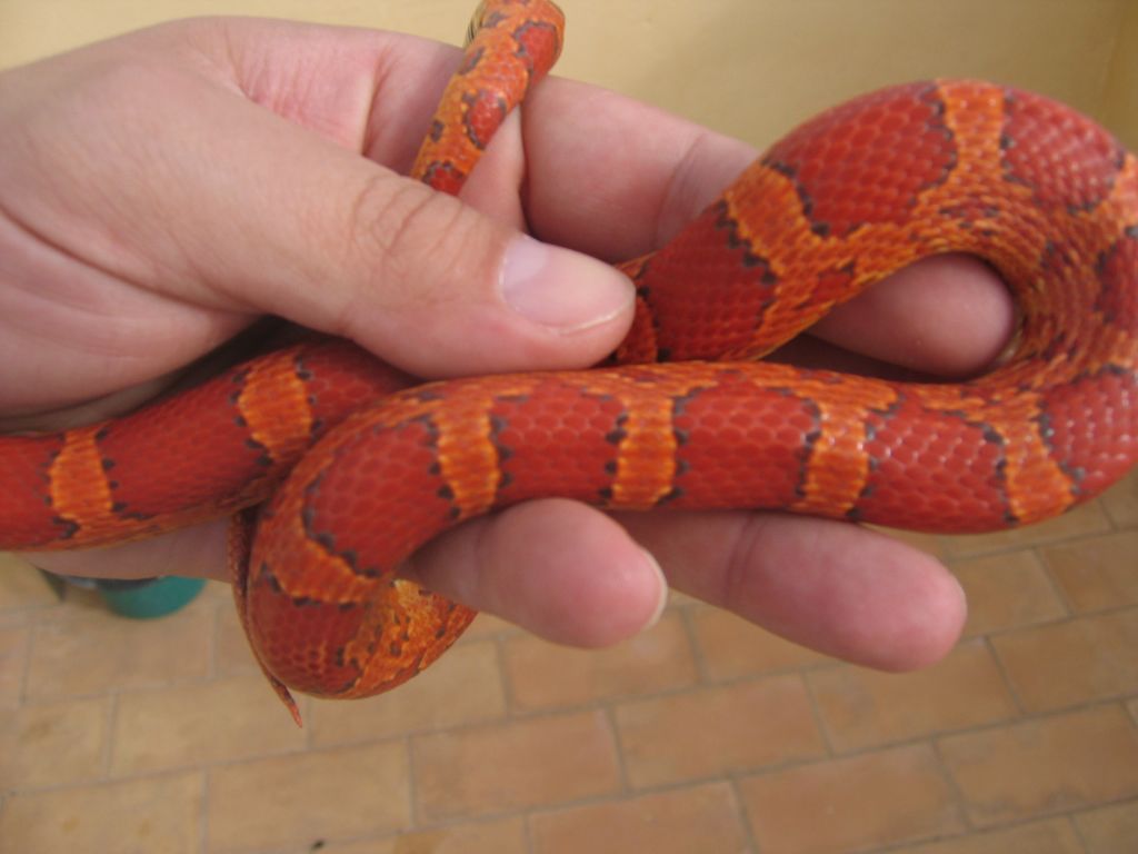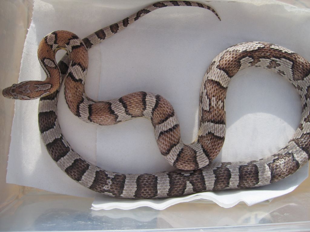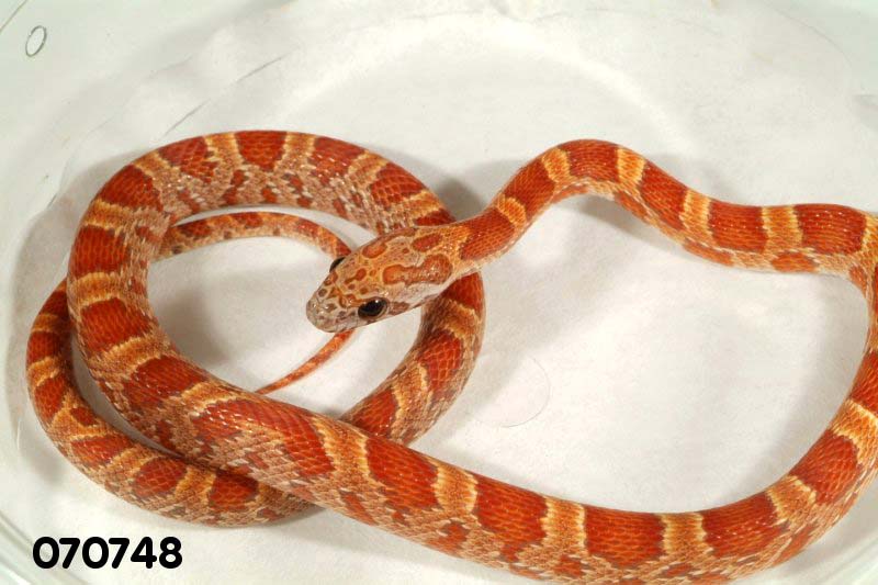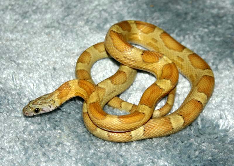 Ultimamente se esta trabajando con la fase Sunkissed que porta un nuevo tipo de hipomelanismo que ademas afecta al patron de la serpiente. Este ultimo hecho hace que sea muy interesante juntarlo con las tipicas mutaciones puesto que se obtienen nuevas fases muy curiosas como esta de la foto.