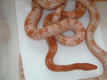 Assuming these tests turn out as expected, we don’t know yet if this is a dominant or codominant (or incompletely dominant) mutation. The only way to know this is to check for a “super” form by breeding two Tessera cornsnakes together. Regretfully, that goal was not accomplished this season, but we should have the answer by the end of 2009!