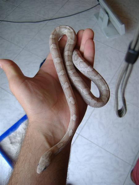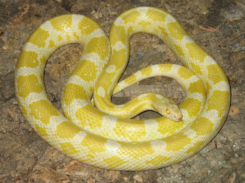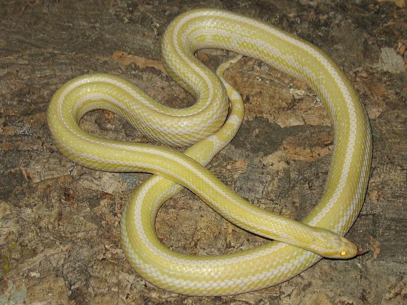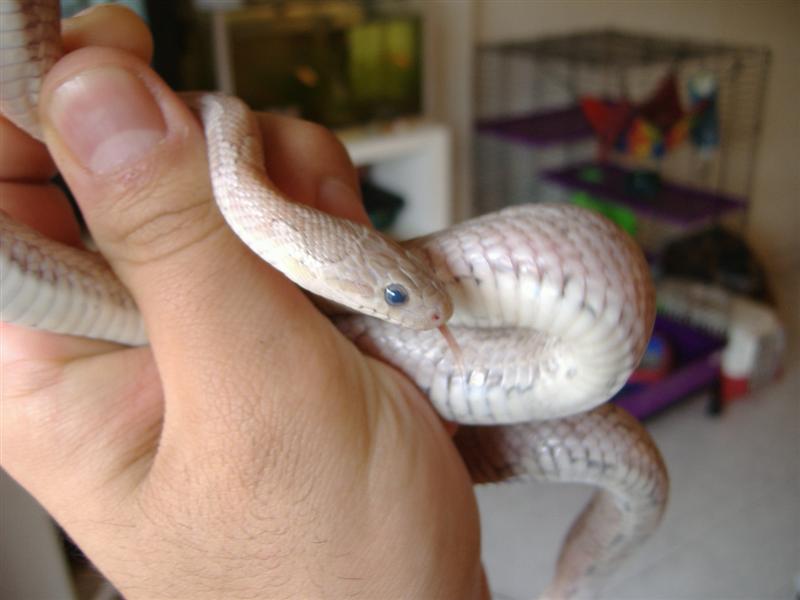Una nueva variacion de snow. se trata de un aanimal extremadamente raro, no solo por la coloracion sino porque hasta la fecha TODOS los albinos portaban ojos rojos por la pigmentacion de la sangre en la pupila. esta serpiente carece de coloracion roja, por lo que se sospecha que la sangre de esta serpiente carece de pigmento rojo. Lamentablemente el unico ejemplar murio. Se estan reproduciendo los padres de nuevo para uintentar sacar alguno mas