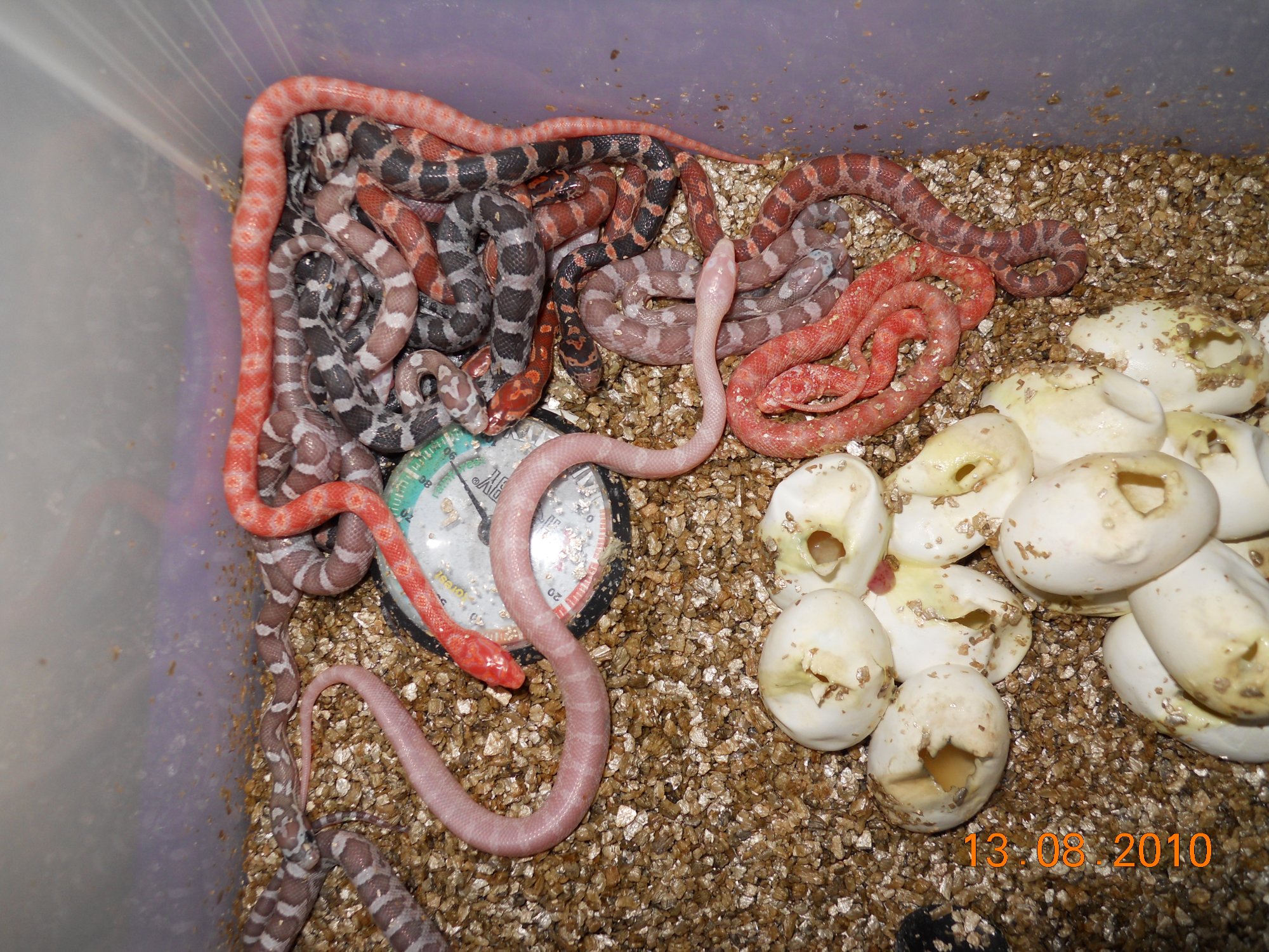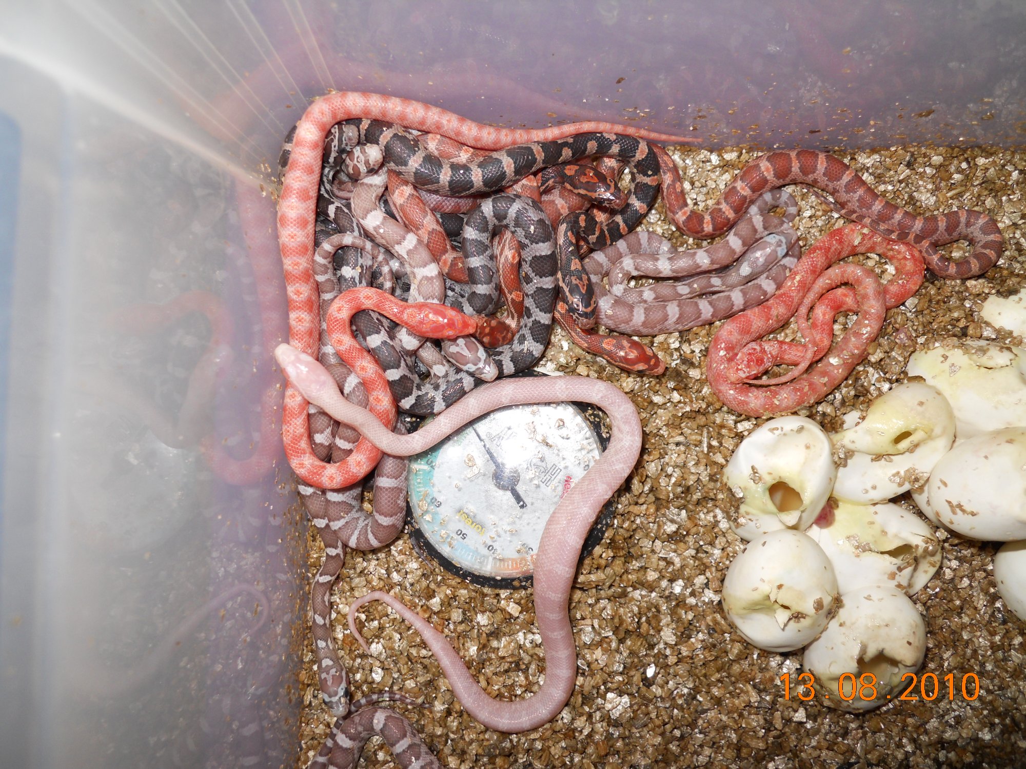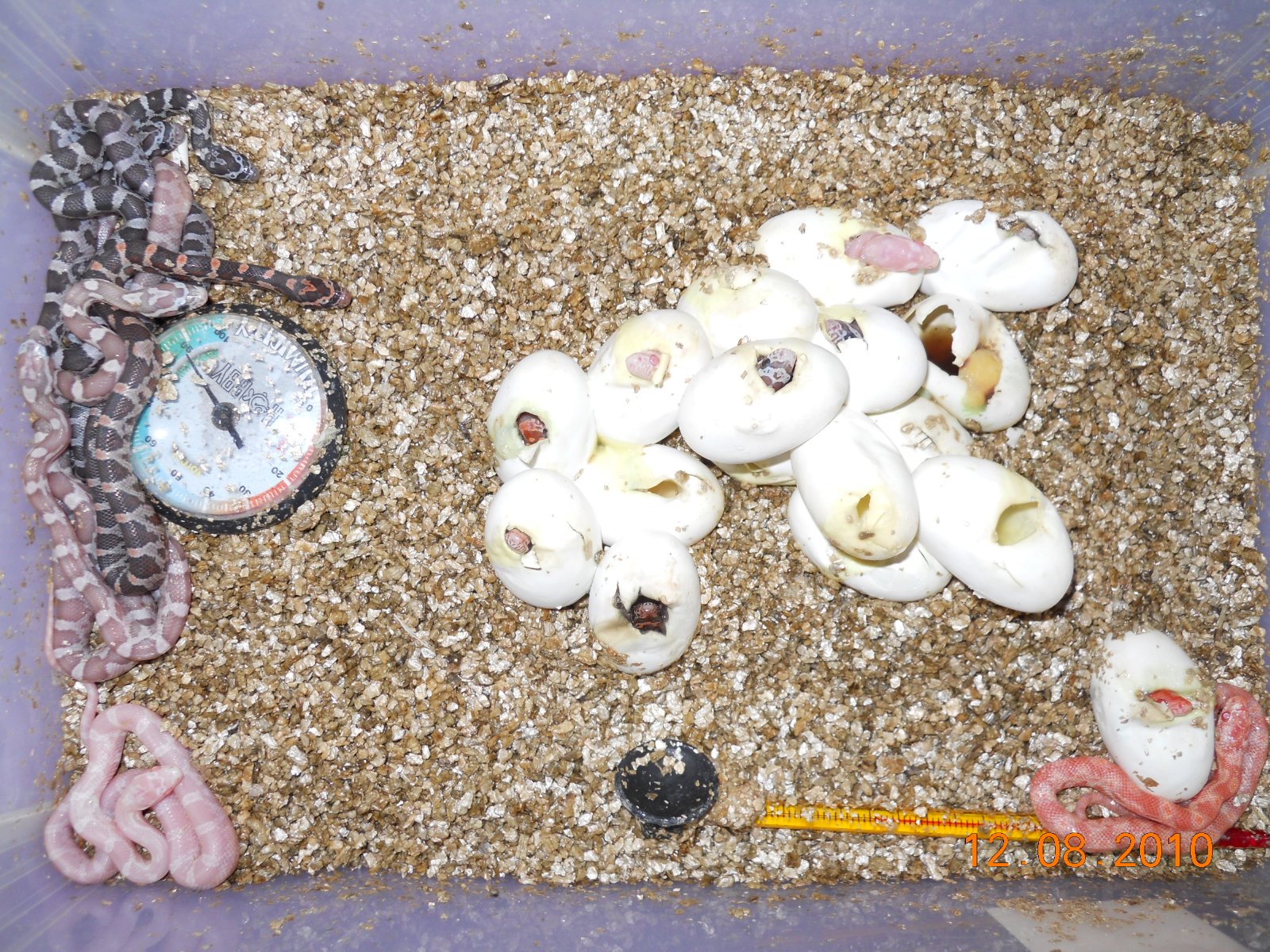 De 18 huevos han nacido: 2 nominales, 2 amelanisticas, 2 anerys,3 snows, 4 hypo y 5 ghost.