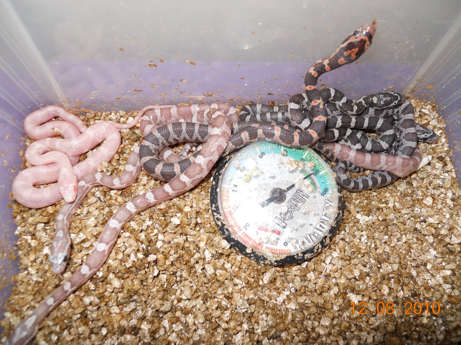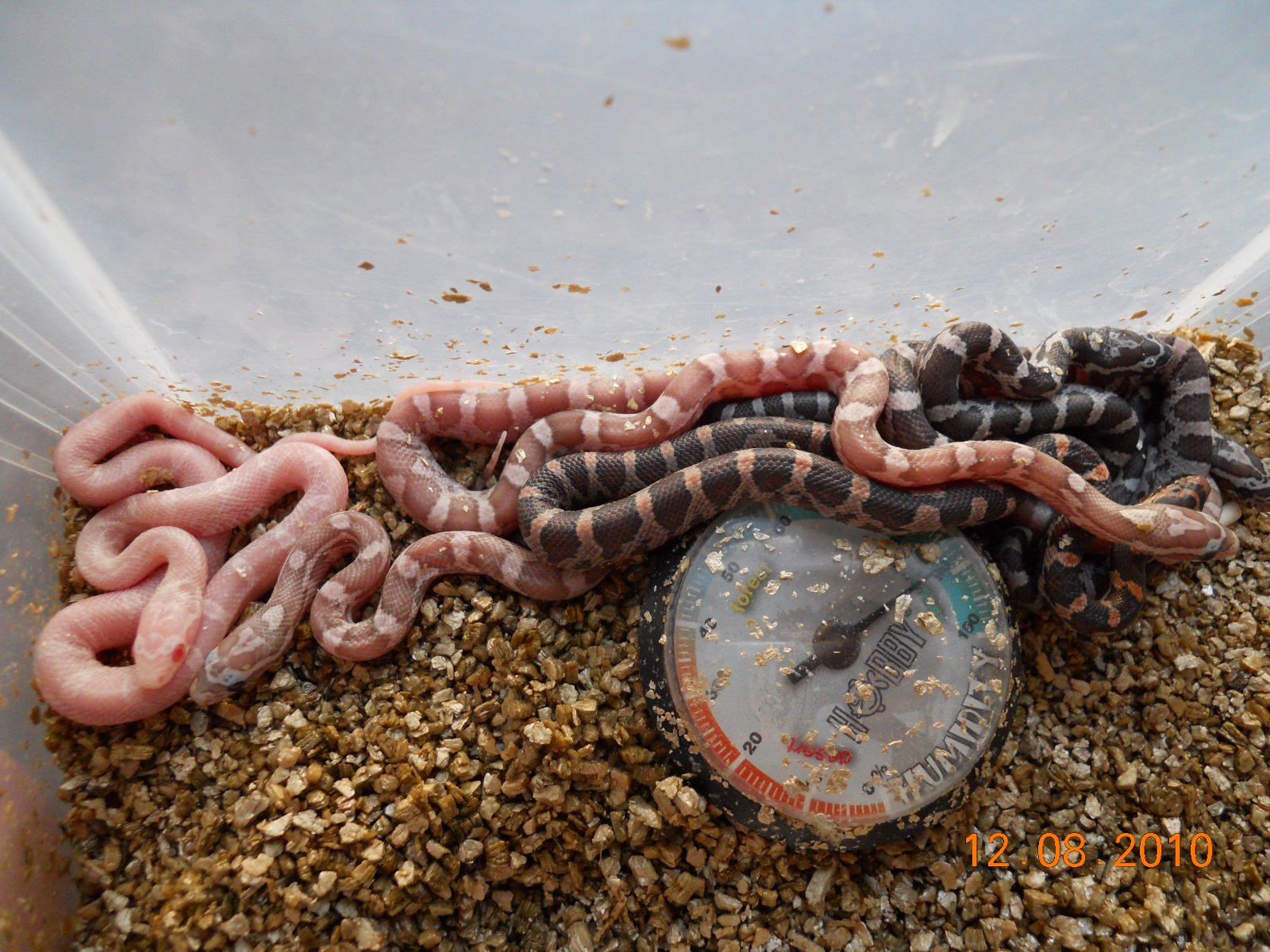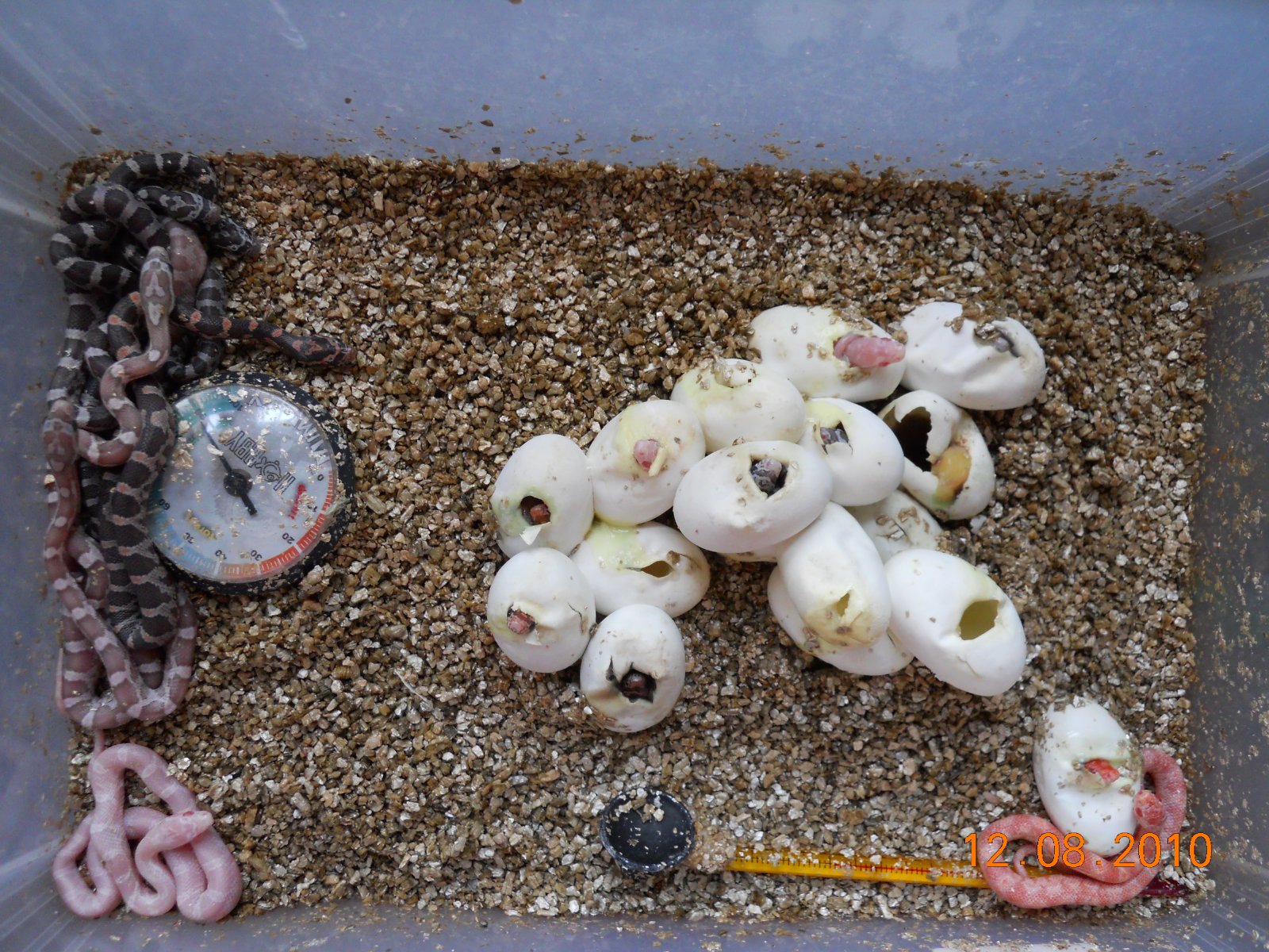 De 18 huevos han nacido: 2 nominales, 2 amelanisticas, 2 anerys,3 snows, 4 hypo y 5 ghost.