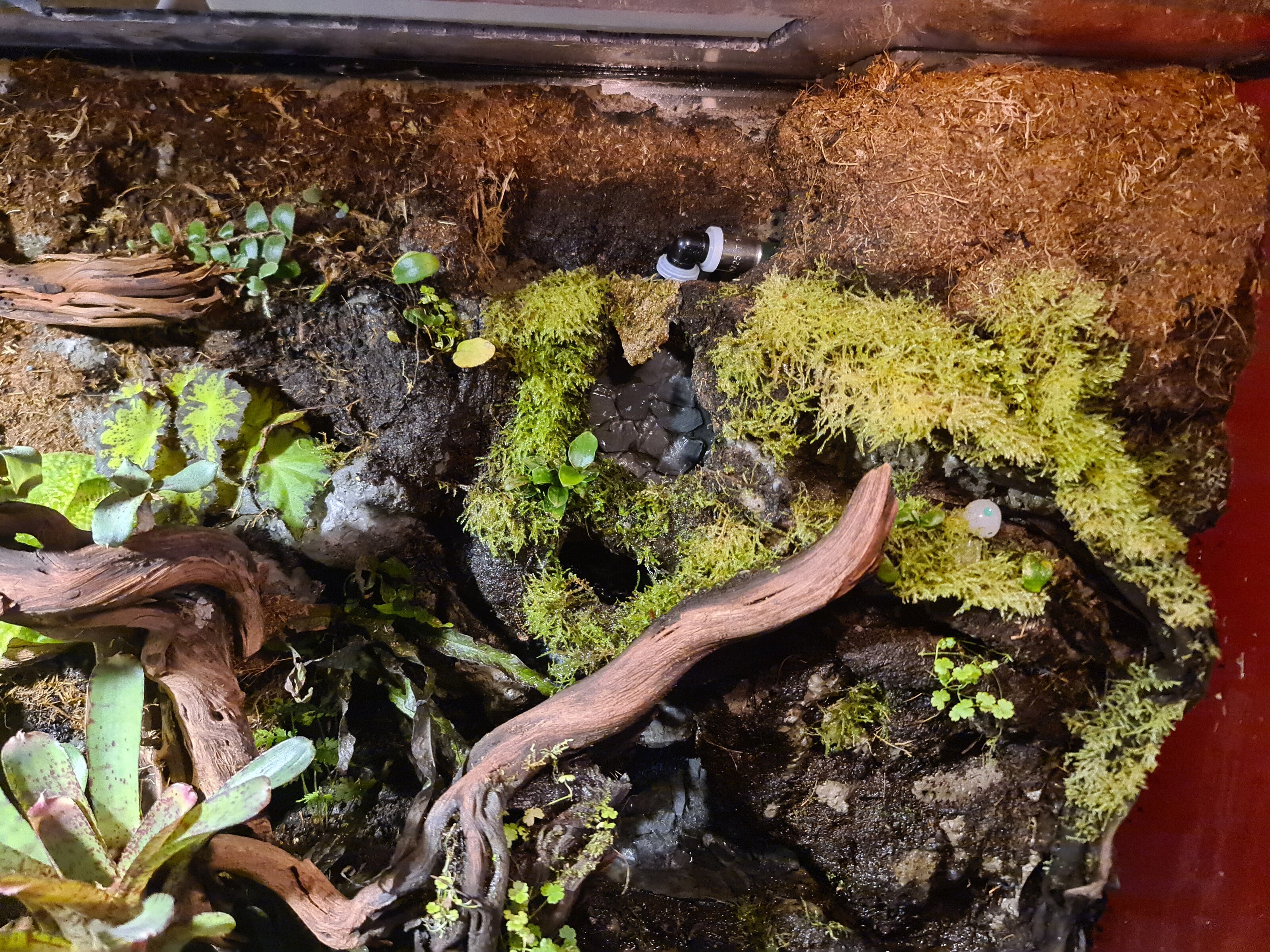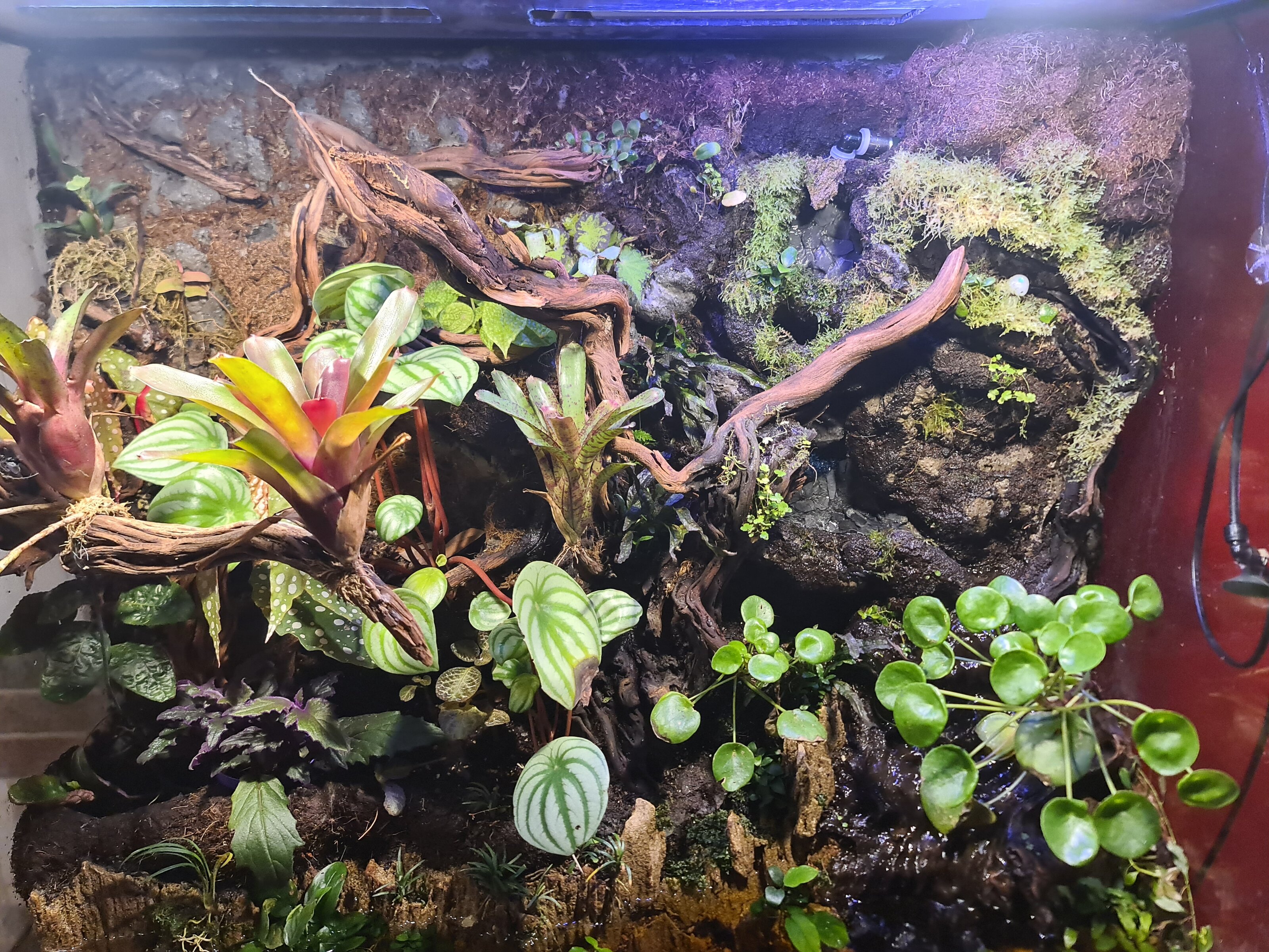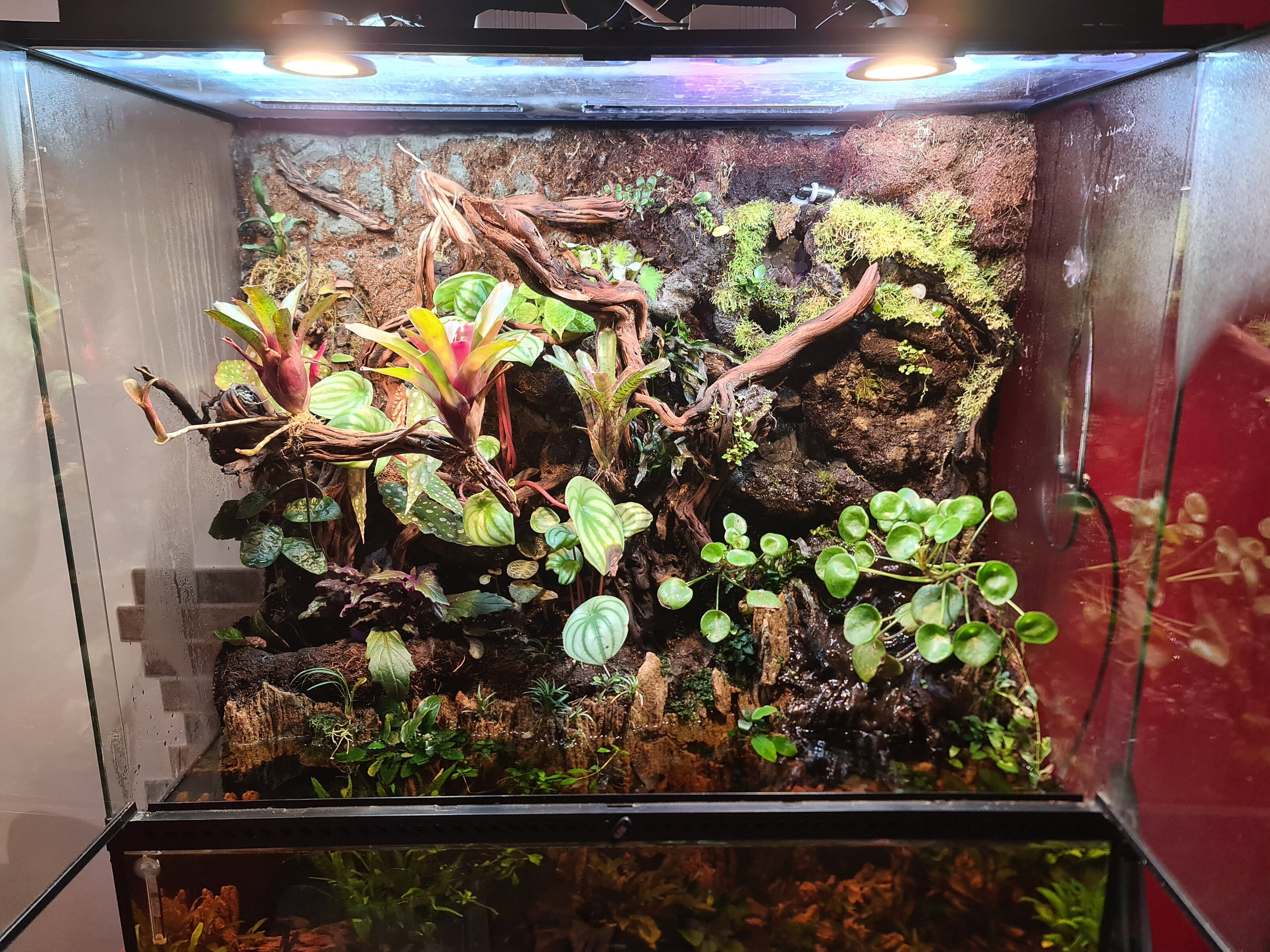 La urna es una exoterra de 90x45x90. Lo llevo a medio hacer, la idea es que sea tropical/subtropical, voy lento porque no le dedico mucho tiempo y la verdad es que tampoco tengo mucha prisa.