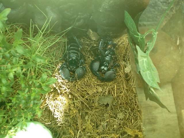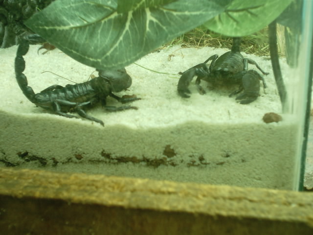 Un error que cometen los aficionados a este tipo de animales y que es muy importante mencionar, es que algunos días pareciese que entran en un estado de suspensión motriz. La primera vez que los vi inertes supuse que estaban muertos y no me deshice de ellos por que entré en la etapa de negación, a las cuatro horas comenzaron a reanimarse y a seguir su vida normal. Uno puede tocarlos, manipularlos de cualquier forma y como en mi caso, sin querer dañarlos y no reaccionarán, pero esto es muy común. Conozco a una persona que consiguió un par de estos ejemplares, y cuando los vio inanimados, pensó que estaban muertos y los desechó tristemente. Tambien es bueno mencionar que puedes tener a los escorpiones que desees, ya sea machos o hembras juntos. Tienden a formar colonias y se llevan bien entre todos.