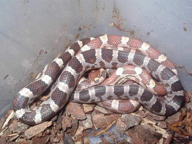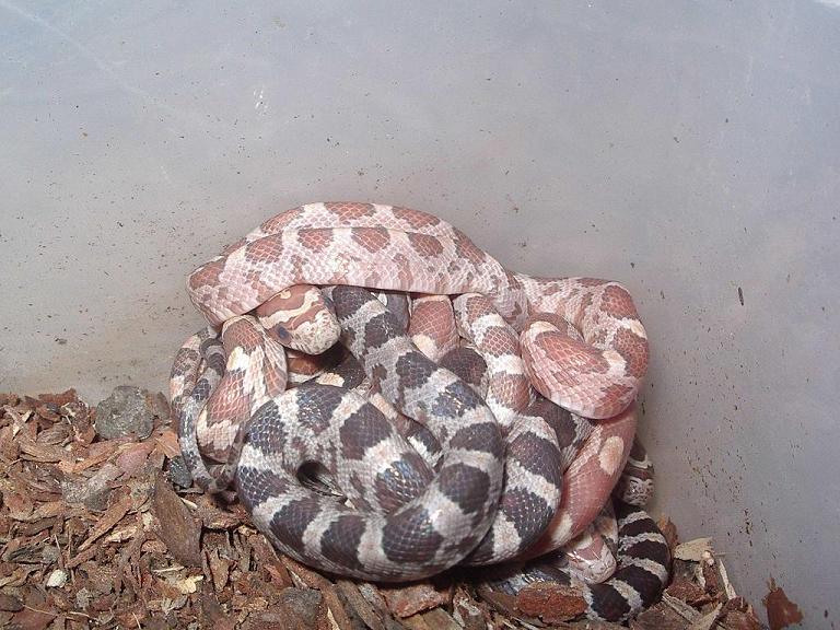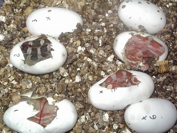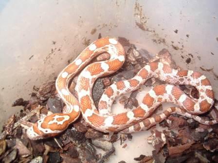 Pero apesar de todo los hipomelanisticos no son del sapecto que debieran tener, son mucho mas similares a un baby lavender (echad un vistazo a www.serpenco.com). Habra que ver la coloracion que adquieren al año, imagino que como el padre ghost no aporta pigmentacion amarilla, la hembra cream aportara todo su amarillo o naranja (que no es poco), por lo que la serpiente acabarara pareciendo a una ghost d color anaranjado, supongo