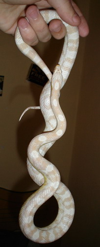 Va la mía, aunque desconozco la fase, no he logrado encontrar cual viene siendo... me la vendieron como albina "a secas". A ver qué dicen... es bebé todavia, unos 40cms aprox.
