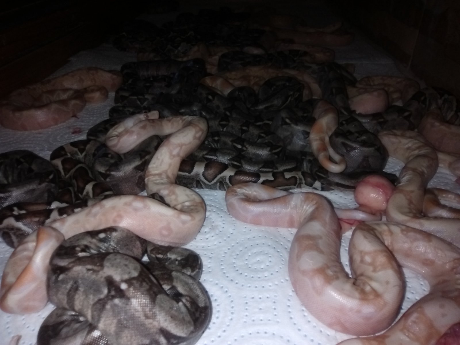 Buenas tardes compañeros, tengo una camada de 14 BCI nominales con Het albino Sharp y 11 albinas. Aún no han hecho su primera muda. Os paso unas fotos de alguna de ellas y del momento del parto. Saludos