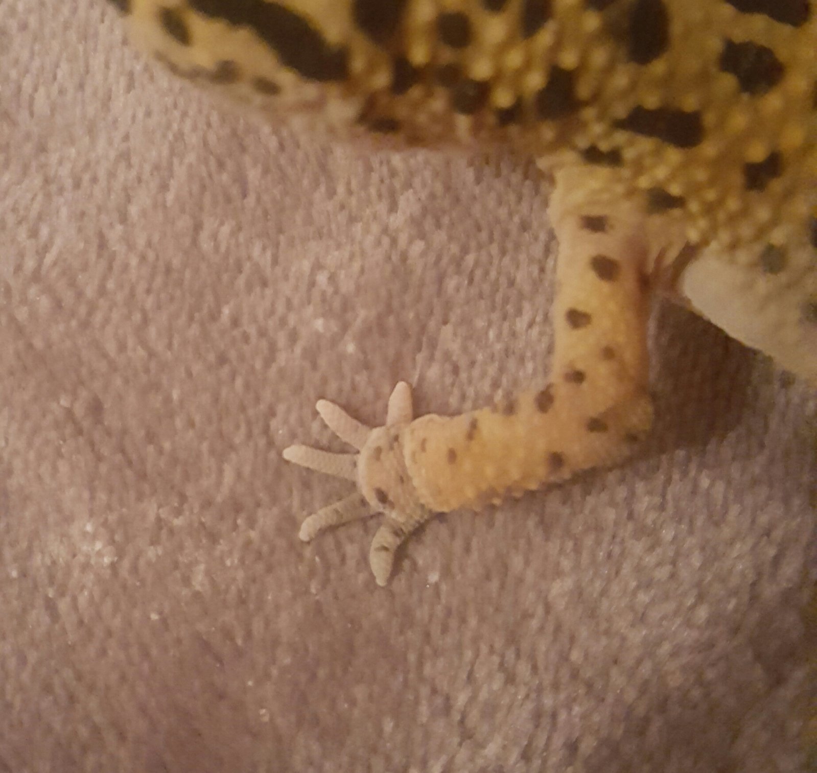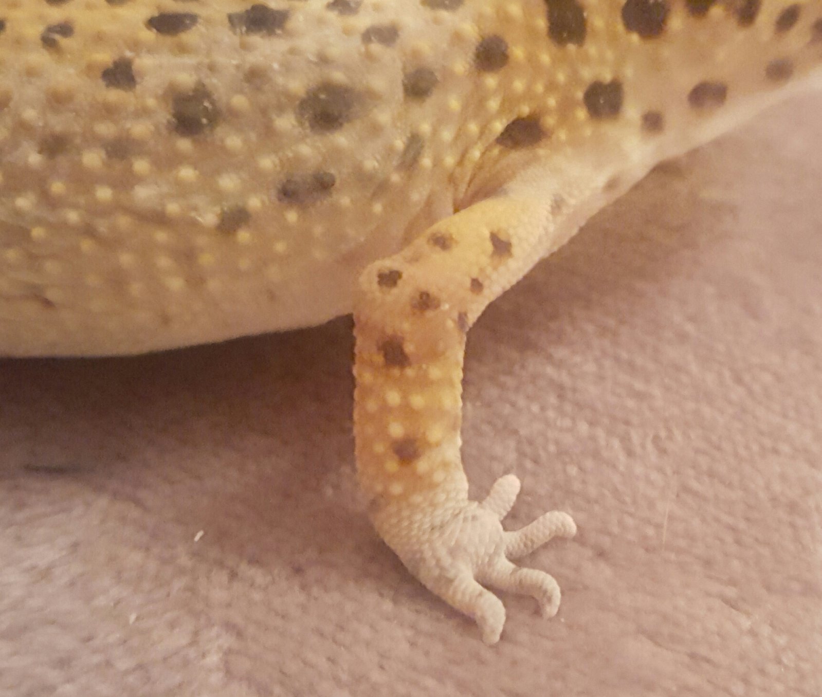 Hola buenas! hace unos dias que he visto las patas delanteras de mi gecko como inchadas... hace 2 semanas la vi que tenía bolitas de grasa en las axilas las cuales ya se disolvieron pero ahora las manos las tiene inchadas y no estoy seguro si tambn se debe a grasa acumulada. pongo fotos.