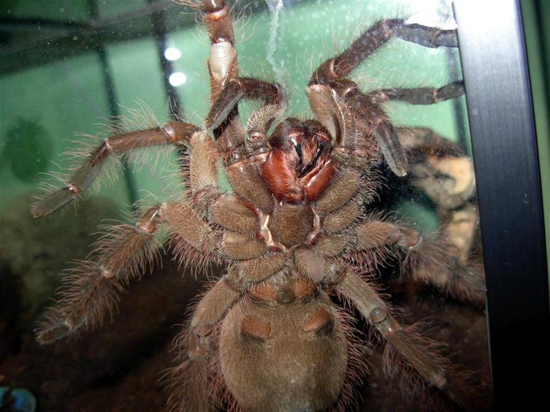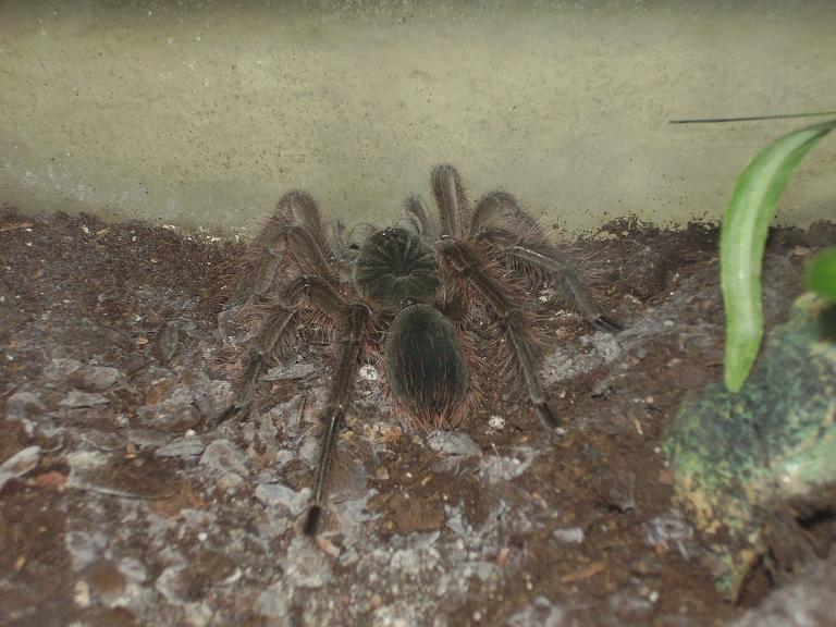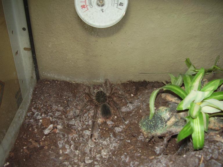 Parece ayer cuando llego de las manos del amigo Mortum tan pekeñita......ahora ya se atreve con pinkys y cucarachas enormes....despues de trasladarla alq sera probablemente su terrario definitivo,me hizo una esplendida madriguera con dos salidas,las cuales al poco tiempo de alimentarse vorazmente sello con tela durante un mes hasta est find semana....ayer ya ansiosa buscaba comida por sus dominios,y no me pude resistir y le di una linda cucaracha q aunq no s eparecie en las fotos,la lleva en la boca.....