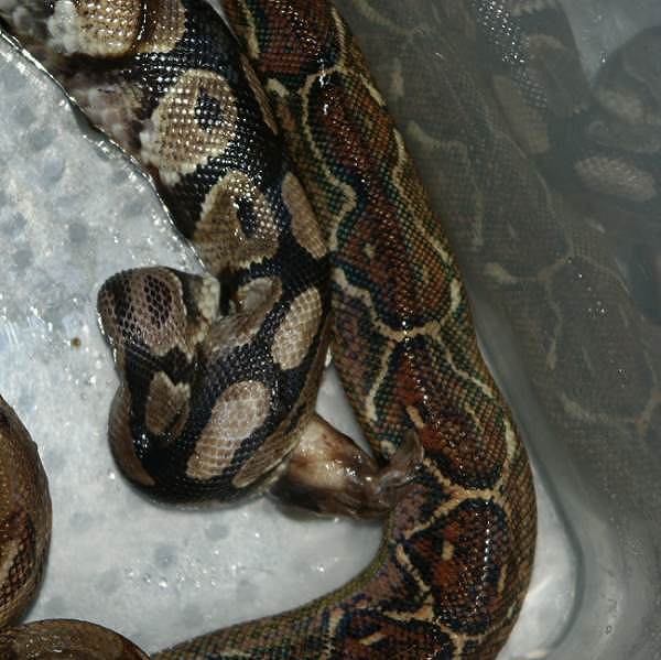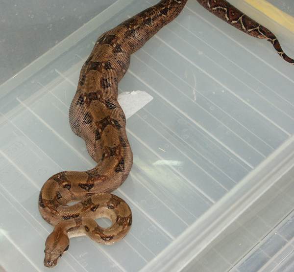 Esto es lo que puede suceder, he visto varios casos, de mantener una boa adulta con una regius baby, pero esto nunca lo habia visto y pienso que esto puede ayudar a que no se mantengan boas y pitones juntas. >