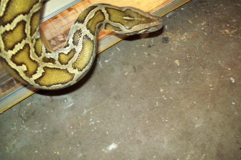 esta tal cual la foto...las fotos son de hoy tiene un añito y poco y mide casi dos metros pero esta pequeña para su edad...no ha pasado hambre pero no ha comido lo que deberia...esta tendria que estar comiendo conejos pero eso en 6 meses lo soluciono...jeje...un saludo