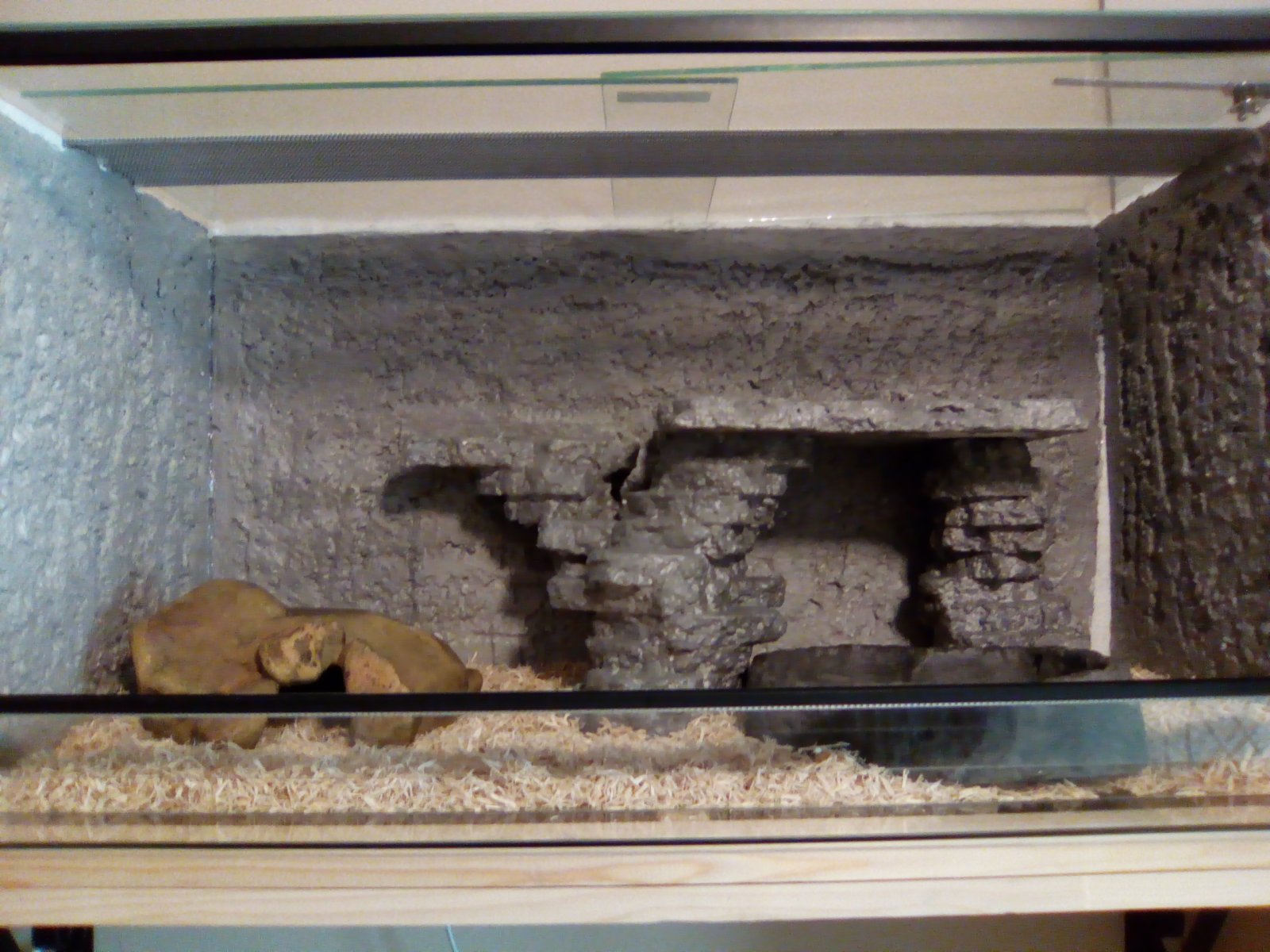 Cuidado con los huecos, en cuanto salga sácala del terrario y rellena todo con la silicona térmica, que como se meta y una escama roce la doble cara se queda pegada y te aseguro que no la sacas sin hacerle daño.