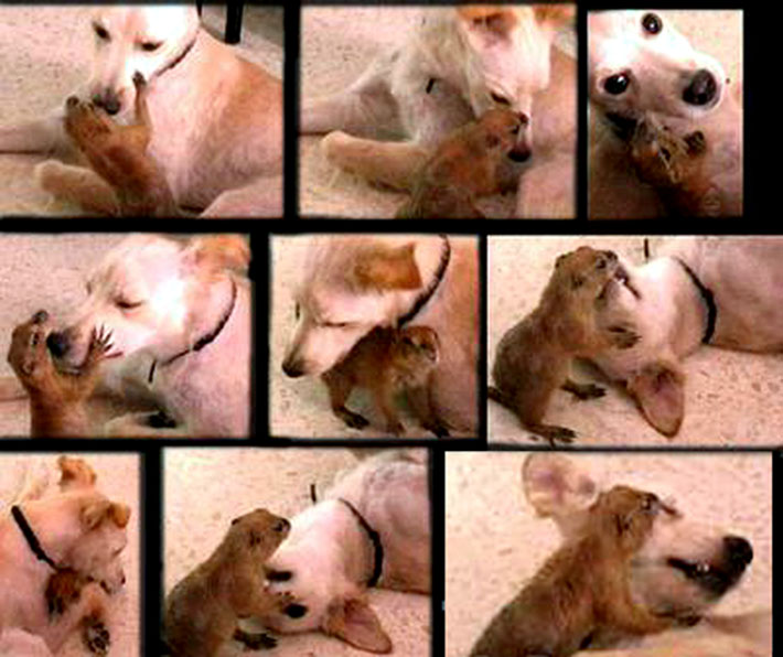 Sí, tubimos otra, pero no era de la misma especie, y se llevaban a matar, era más pequeña, y más arisca, algún bocado se llevo el pobrecillo por querer acercarse ;)