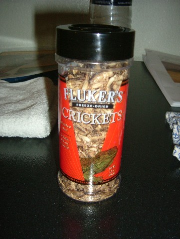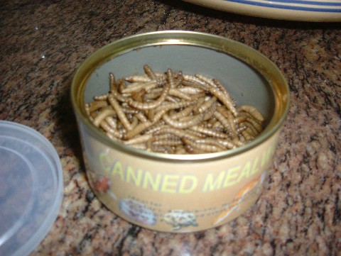 hola a todos como estamos hablando de gustos gastronomicos :p jejeje yo a los míos les doy grillos hidrolizados y no veas lo que le gustan y también gusanos de la harina en conserva están como si fueran vivos os pongo unas fotos para que lo veáis,ok un saludo