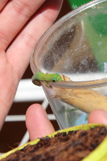 Por cierto si te sirve de utilidad, yo con los gekos arboricolas tengo el mismo metodo de terrario cuando nacen, bote d elos chinos y ale, ya que les sobra sitio. Bueno lo que te queria decir es que he visto que has invertido mucho tiempo y paciencia en hacer ese agujero, pegarle malla y demas,... yo empleo el metodo mantis,.. compro unas medias bien fuertes y alle las corto un poco y no hace falta ni cortar el bote ni nada, solo unos agujertos en la parte inferior para que exista un buen curso de ventilacion.