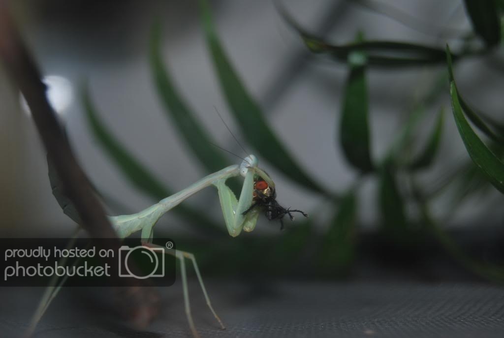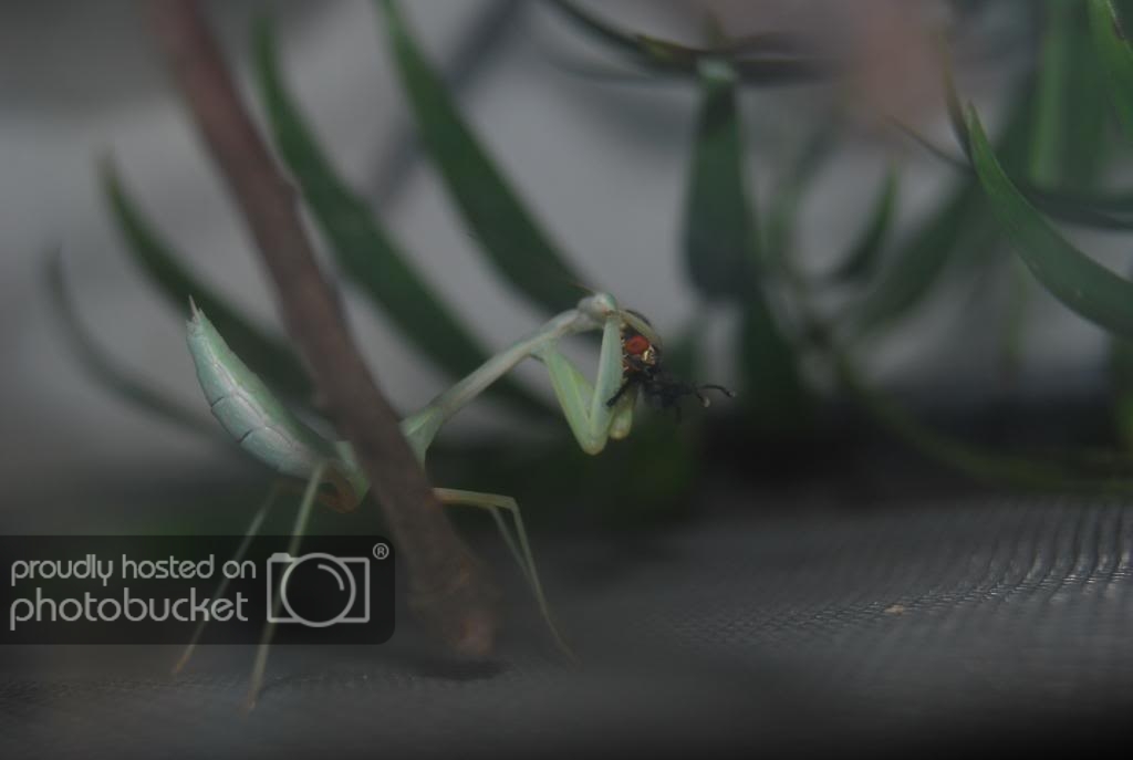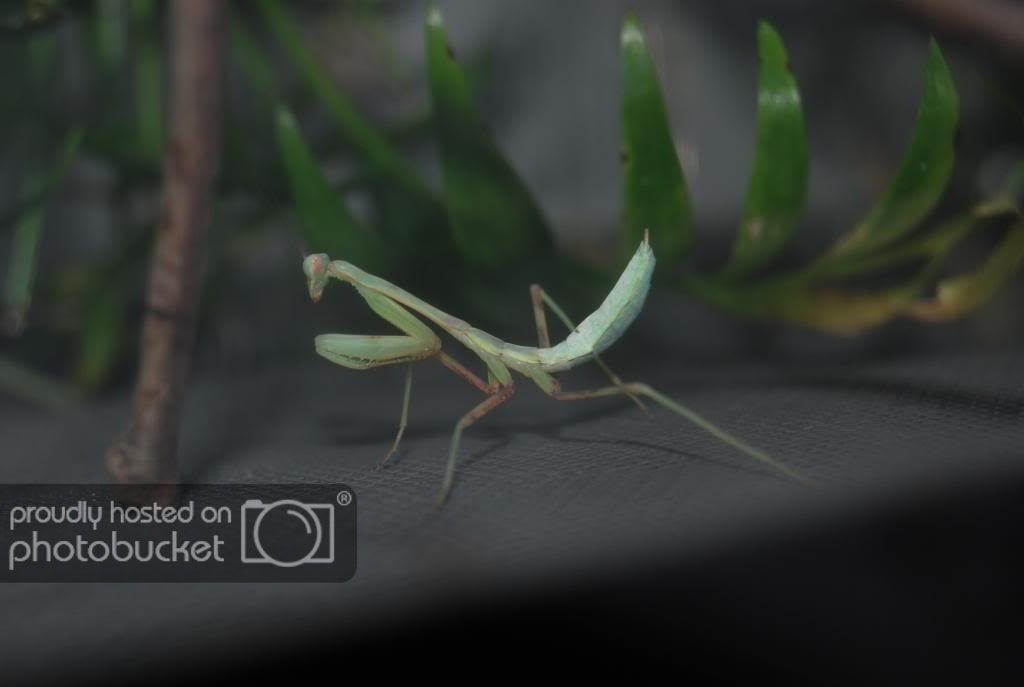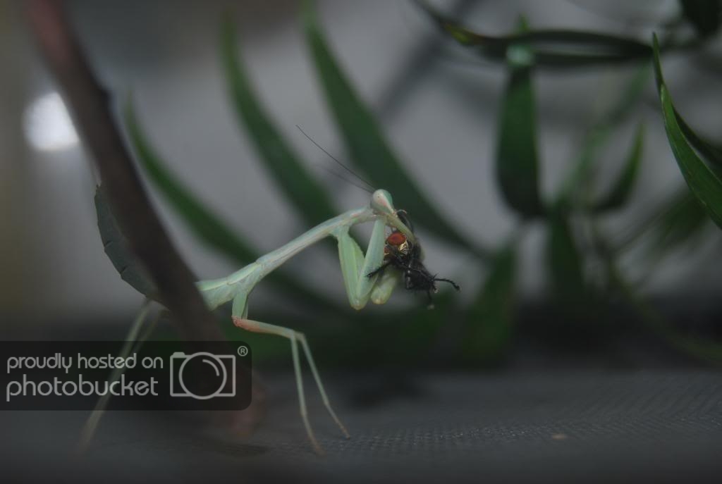 Pues aqui os dejo unas fotitos de mis phyllocrania paradoxa y Hierodula grandis. Las tengo desde hace un dia y estoy feliiiiiz y contento. Comen como cerdas, han engordado desde que las traje y os pongo las fotos para que veais lo feitas que son.