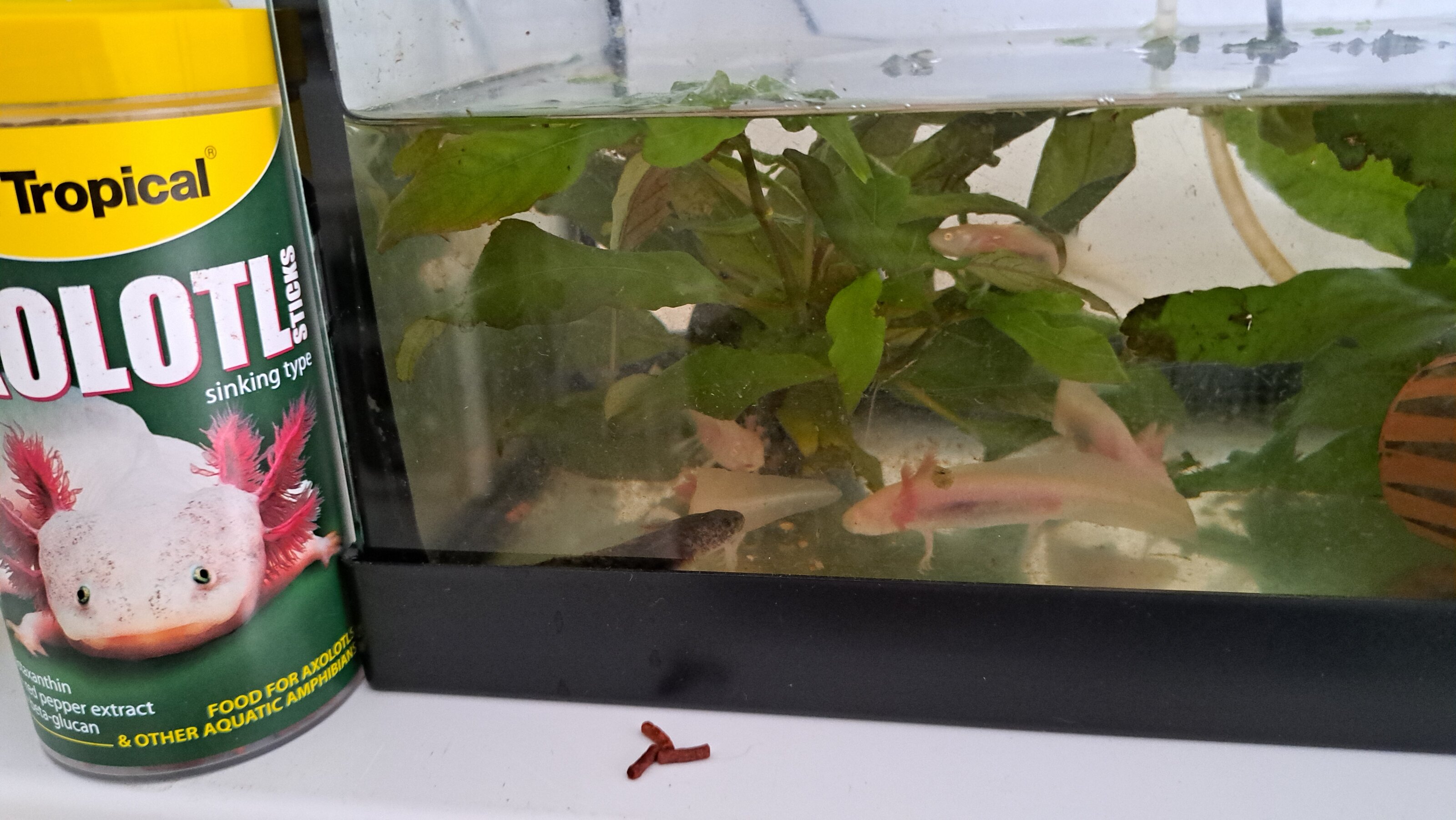Yo utilizo el pienso de ajolotes del que se habla en el siguiente tema: https://www.faunaexotica.net/thread...uirlo-y-si-es-de-fuera-compartir-envio.91009/