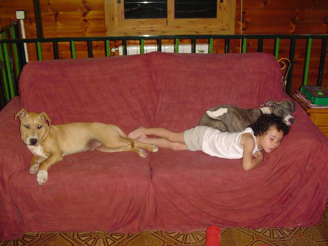 La verdad es que creo que es mas normal que se te ponga gallito un perro pequeño y un cocker que por cierto tienen muuuuuy mal humor por lo general y la gente los compra como perro-niñera (??), que un perro de presa. Que normalmente no dan ningun problema, simplemente hay que tenerlos bien enseñados... y cansarlos mucho. Cuando estan cansados pasan de todo.