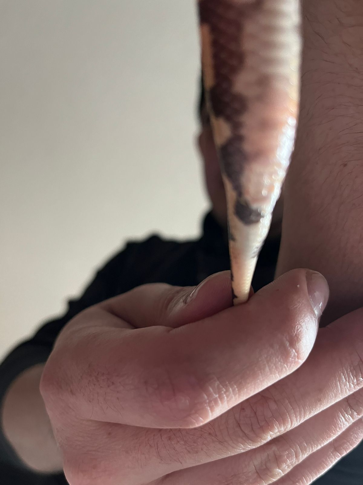 Es mi primera vez que publicó aquí y quería preguntar sobre mi pequeña pitón bola, es la primera vez que tengo una y he notado que le acaba de aparecer una mancha roja en la cola creo que muy cerca de la cloaca o en la misma,