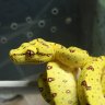 El bicho tiene aproximadamente 1 año y medio, y es una Aru, la verdad es que es muy tranquila, me deja manipular todo lo que quiera del terrario y no me hace el mas minimo amago de atacar, y come perfectamente, por tanto me da igual estar continuamente arreglando plantas y regando ;)