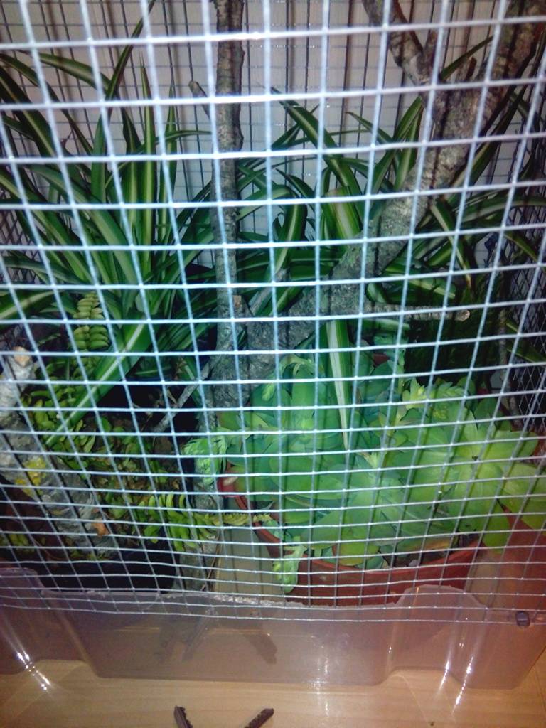 Es una echeveria, el estar en interior lo llevan muy mal, si puedes sácala a la calle.Métele unos potos o unos ficus benjamina, son baratos y dan buen resultado para camaleones.