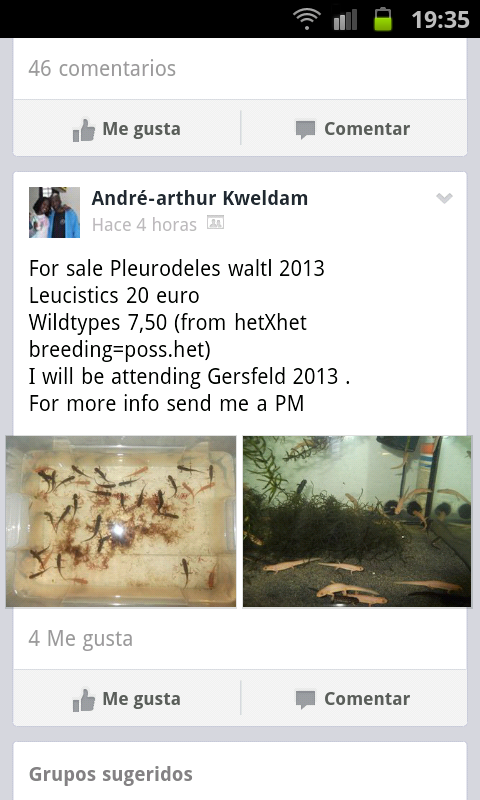En cuanto al Pleurodeles albino, conozco el ejemplar de la foto de Maribichos y he visto en Hamm vender crías de animales albinos al igual que leucisticos . Los de la foto la verdad no sabría decirlo por la calidad de la foto, pero vamos haberlos los hay.
