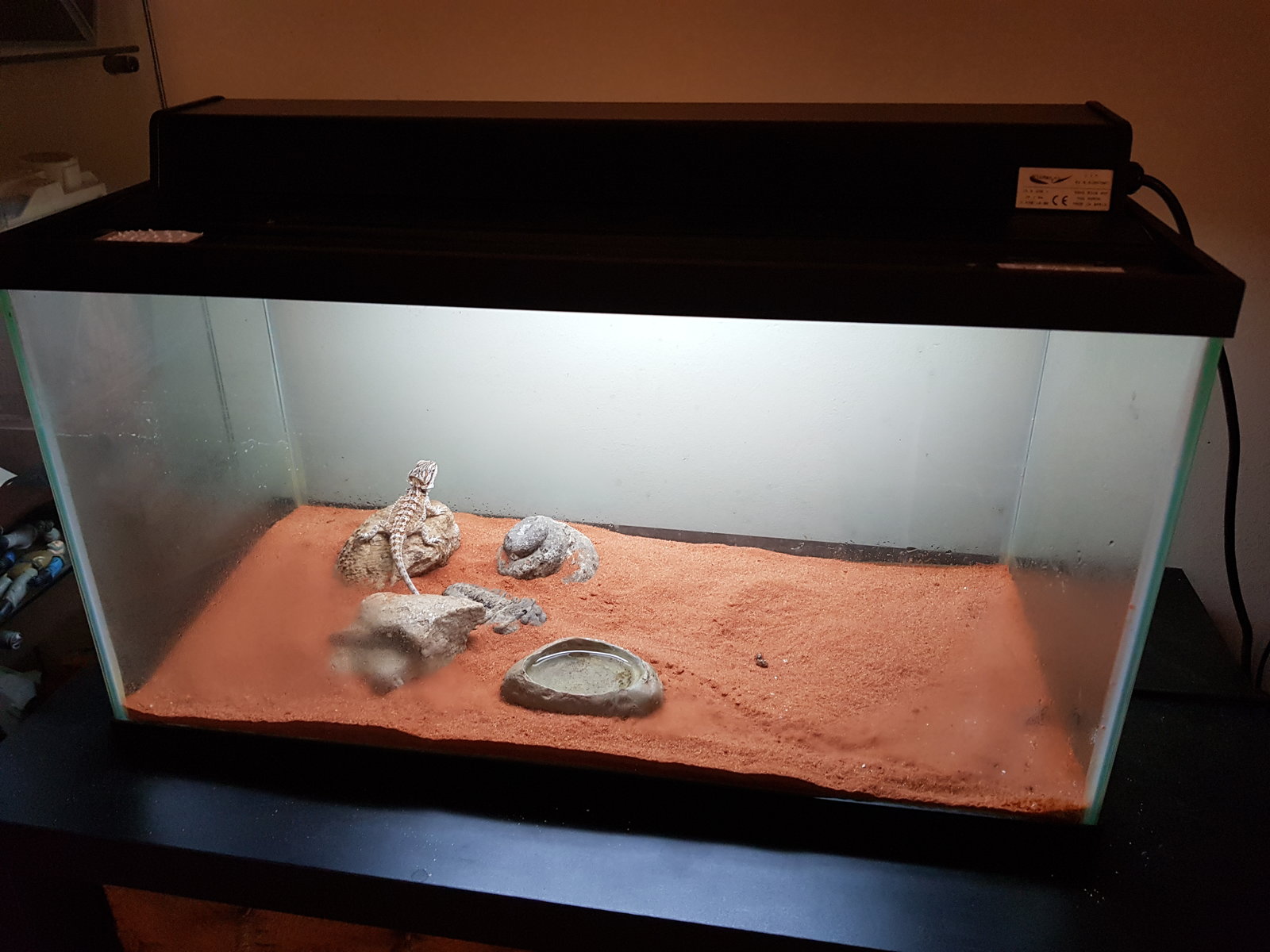 Y que t iba a decir le tienes puesto manta térmica o luz de calor? Como no se ve en la foto del terrario