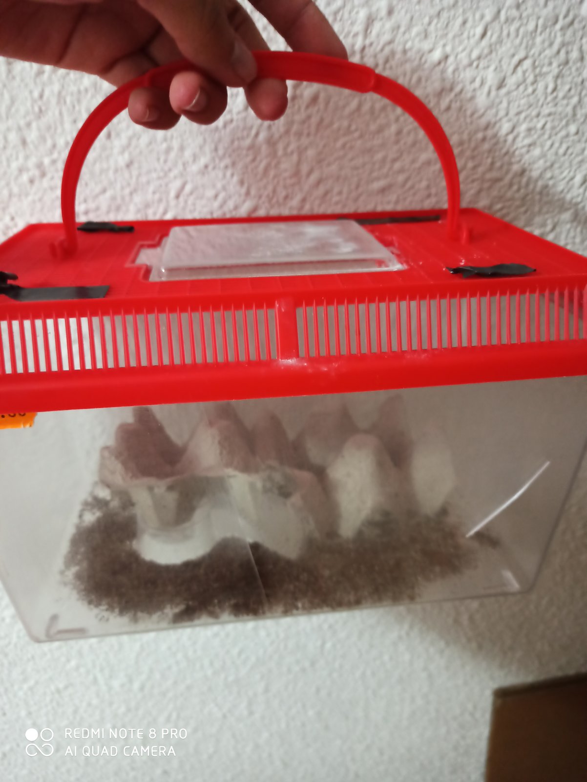 Mira ayer desesperada compre en amazon jaula con unos bloques los cuales solo tengo que sacar y meter en el terrario y se caen los grillos solos...esta muy bien...te mando foto...ahora lo que me pasa es que tengo el terrario en el salon y tengo aire acondicionado...anoche se me olvido apagarlo y esta mañana estaba "pepe" muy frio y tuve que darle calor con mis manos...ahora ya esta bien pero me pregunto si es malo el aire y deberia de protegerlo de alguna manera