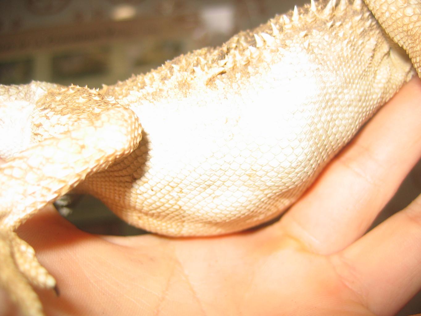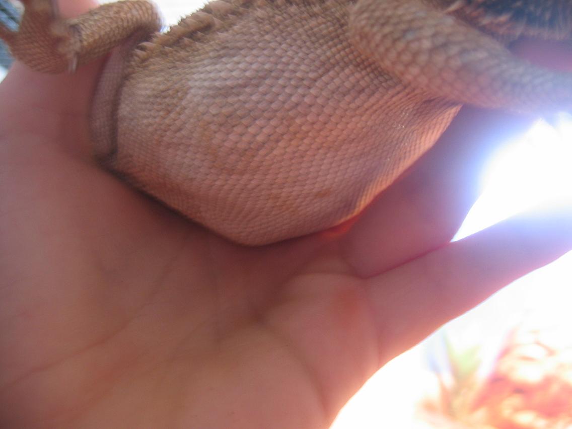 Hace cosa de un mes les "quité" de la hibernación, y depués de pillarles infraganti un par de veces, hoy he cojido a la hembra (con delicadeza), y he notado "bultos" en la tripa...He tocado un poco, y no es cosa de la piel, esque hay algo detrás...^^