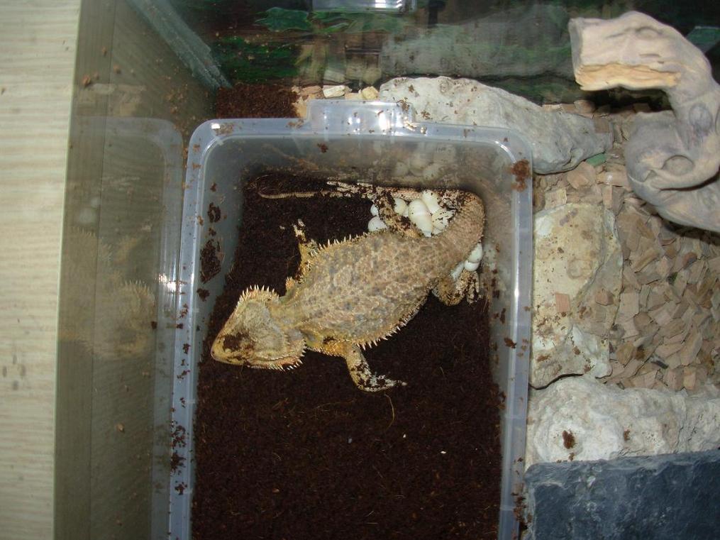 Re: Pogona embarazada !!! Está soltando los huevos!!!