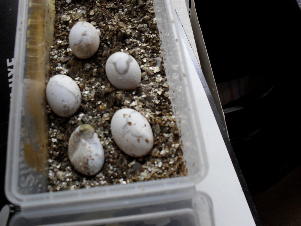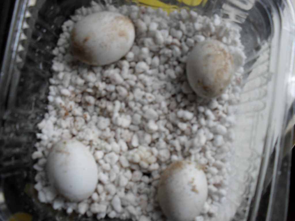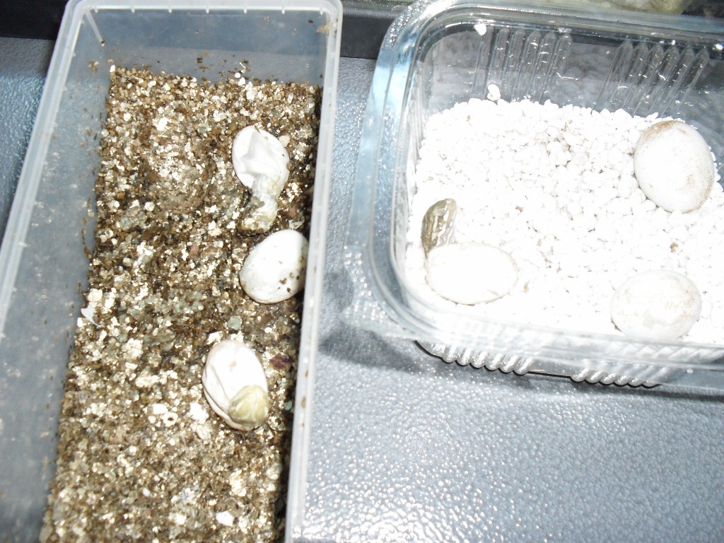 Bueno, os dejo una foto de esa primera cabecita y de los otros huevos gordísimos (unos en vermiculita, otros en perlita).
