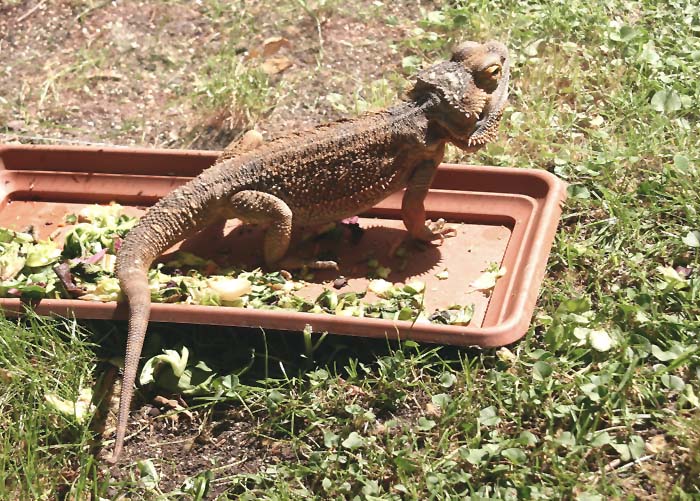 Aquí os presento a Drago (que original verdad) la cosa es que esta Pogona estaba en una tienda en un rincón medio abandonada y con una deshidratación bastante acusada tenia una capa de suciedad encima que cuando llegé a casa lo primero que hice fue darle un baño en agua tibia la cual acabó marrón del polvo que tenia el animal, tambien tenia en la cabeza un bulto blanco que creo era piel de mudas anteriores que por lo que fuese no se le cayó, a base de agua caliente y cepillo conseguí quitarle casi todo, y una vez limpio, pulido y más animado le presenté a la que será su pareja.