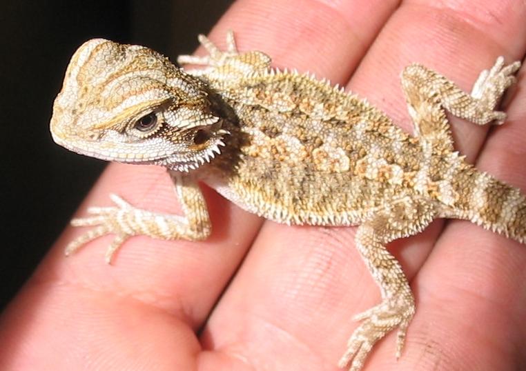 Otra de mis pogonitas...esta es de More. Cuando esta tomando el sol se pone mas amarilla aún. Y los dibujos negros de la cabeza praticamente son imperceptibles ;)