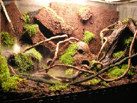 Asi que de vuelta nos hemos metido en otra tienda y he pillado unas lianas y algo de musgo;aun tengo que colocar la cascada en condiciones y el goteo ocultarlo.