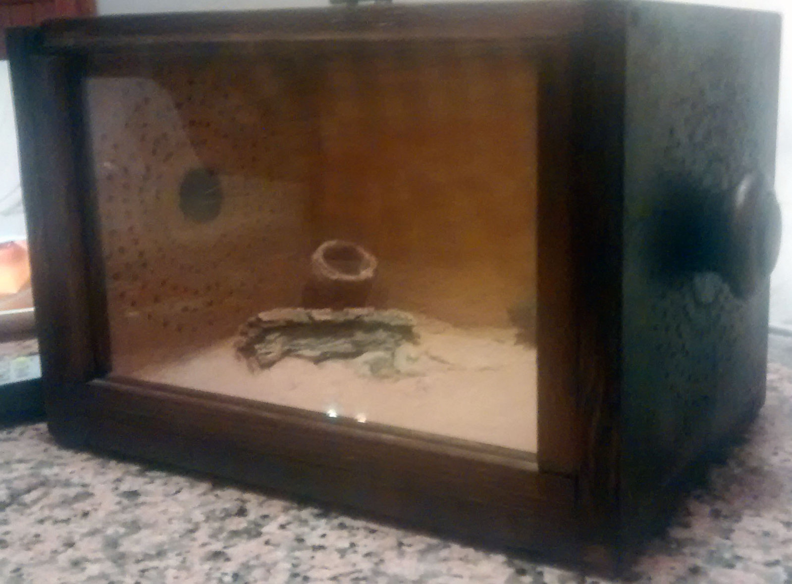 Hola qué tal, me gustaría que me recomendárais algún habitante (mejor una pareja) no muy difícil/caro para un pequeño terrario de madera de 27 cm. x 17 cm. x 17 cm. (ancho x alto x profundo) que no se puede poner en vertical (adjunto foto).