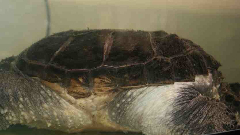 buenas el caparazon de las cheli no es redondeado como el de otras tortugas acuaticas es mas bien plano y como si se le hubiera quedado pequeño a ver si hago fotos a las mias y las cuelgo que hace tiempo que no les hago,lo que si tiene parece son algas eso pasandole una esponja listo pero tampoco pasa nada