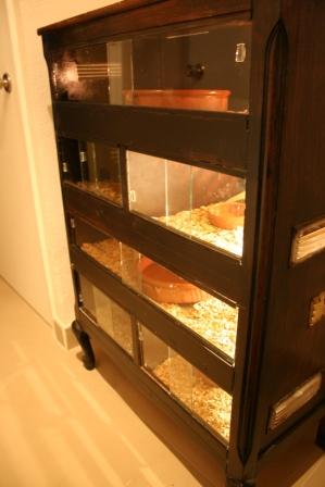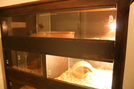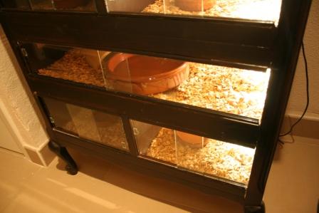 He vuelto a hacer una modificacion del terrario. Ahora son cuatro pisos independientes dos de los cuales estan subdivididos a su vez en dos compartimentos pequenos para albergar las dos crias de cambelli