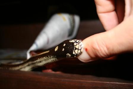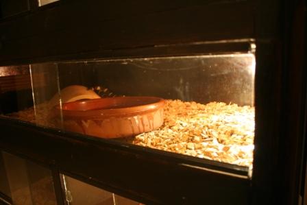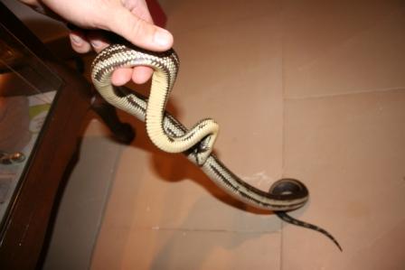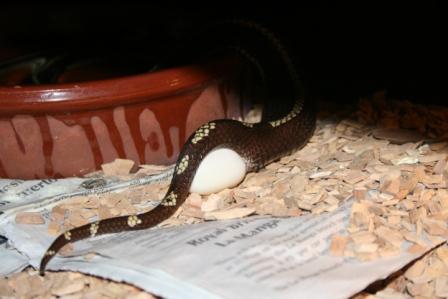 Ella.... glotona, nerviosa, asustadiza. Grandes comidas grandes puestas pero no muy sociable. Las hembras que he tenido siempre han sido mas glotonas que los machos comiendose algunas veces mas de cinco ratones uno detras de otro... supongo para poder hacer frente al desgaste energetico de las puestas anuales..