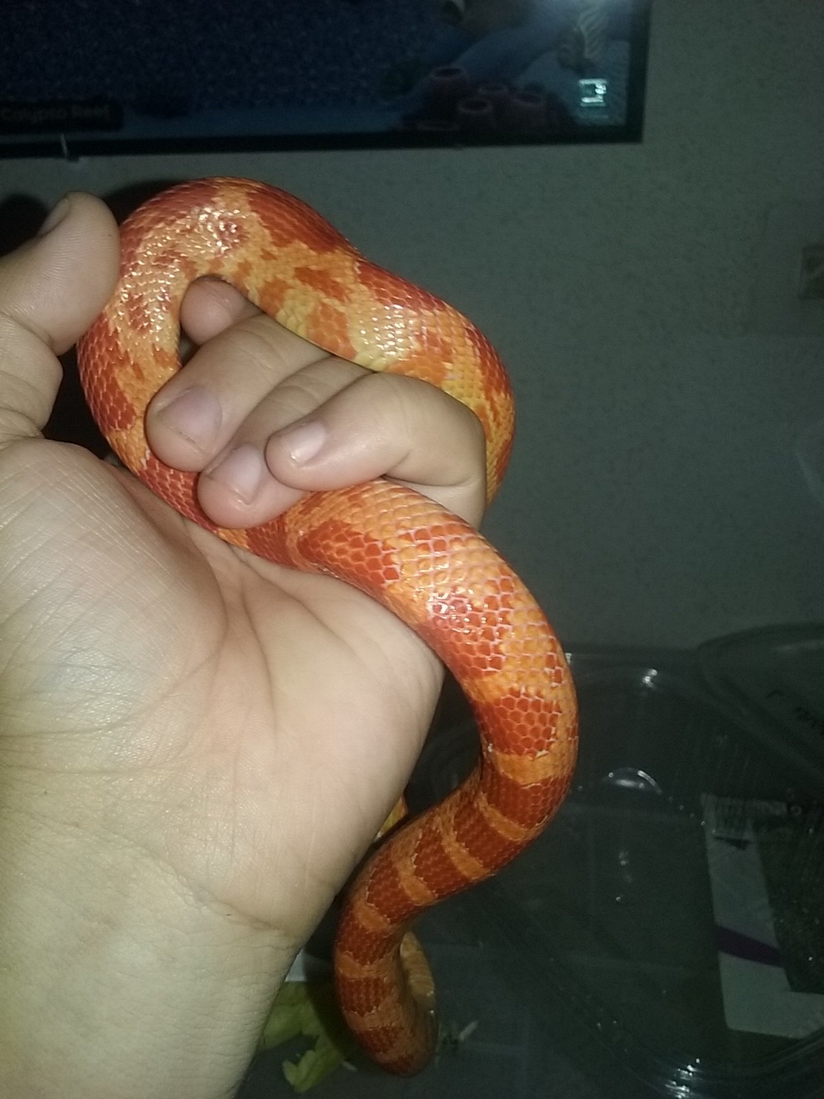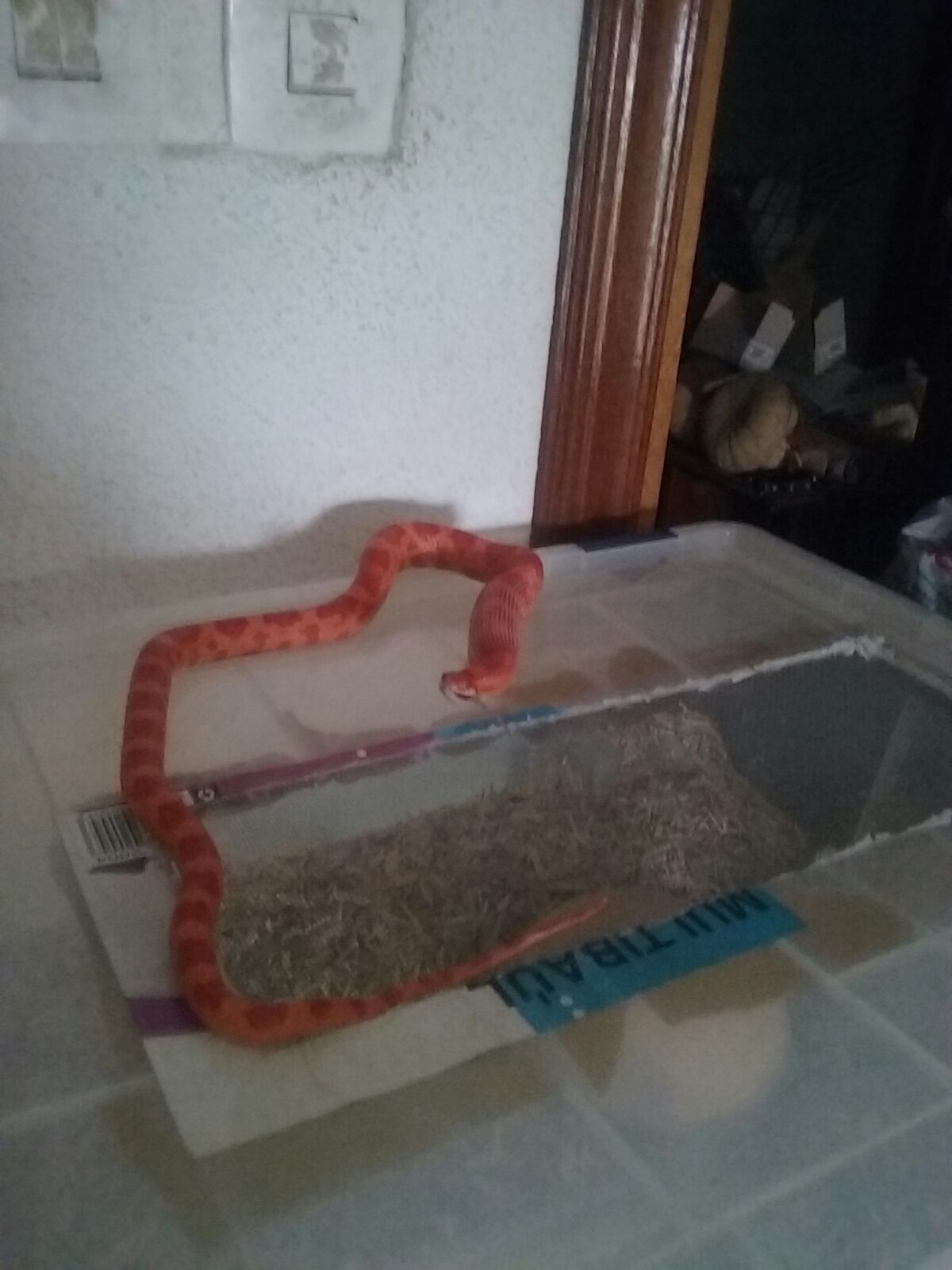 Esta ya la conociais y es la que no come ( cogida en la expo a serpentarium , en el tapper habia cagado , no ha mudado ni hecho el intento de mudar y no ha comido aun , ni primer pelo ni pinkis , he hecho un amago de embucharla pero ni para atras )