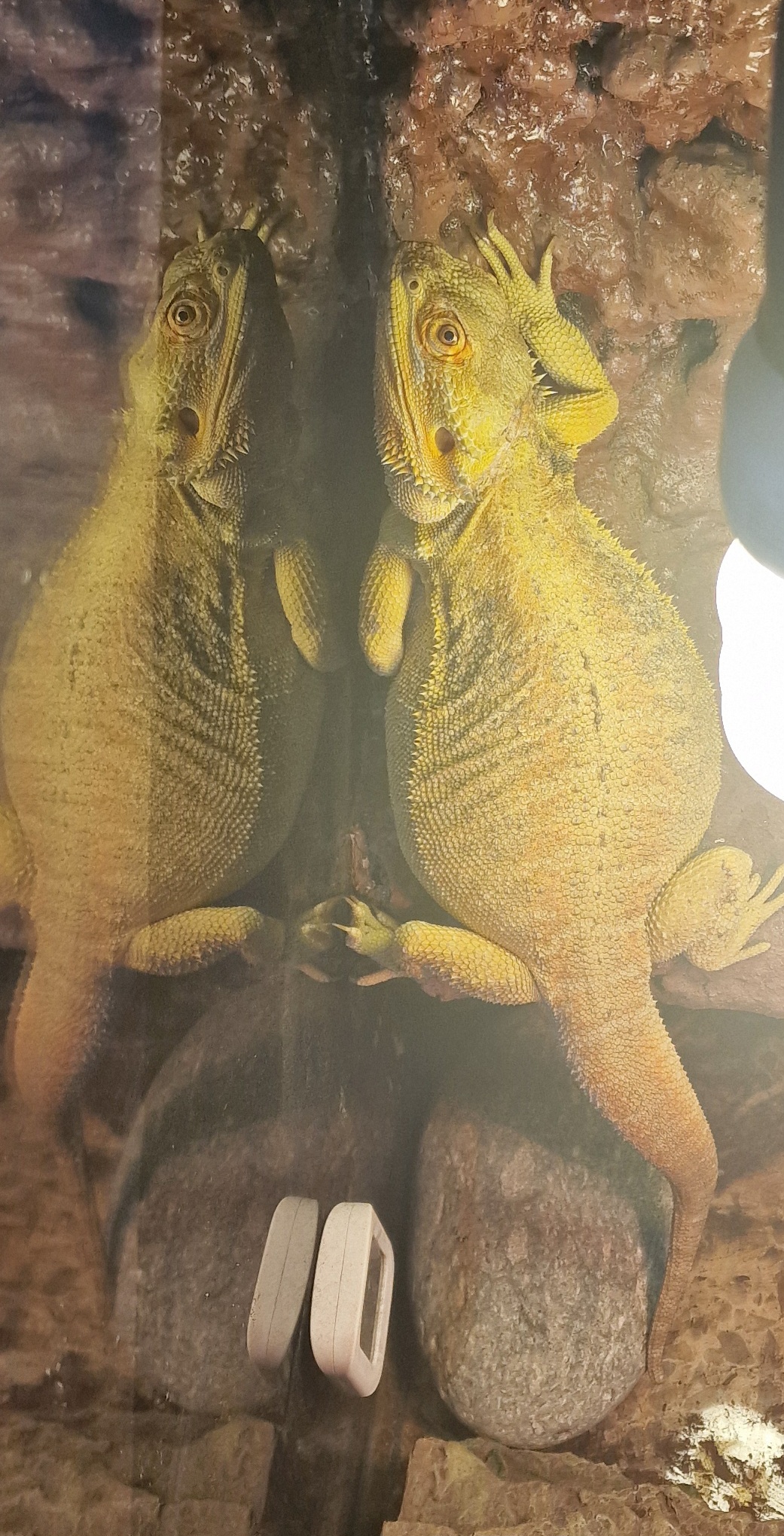 Un poco de las locuras de mi pogona, hace 2 meses llegó a casa on un macho, estaban juntos cuanllegaron a casa las separe, a mi me gusta mucho leer ver videos y comparar. Al día siguiente de llegar la vi que empezó a escalbar, retire el sustrato de maíz y le puse tierra, escarbo a los días llegue a casa de trabajar y puso 18 huevos, eran aguados y amarillentos y se veían golpeados de los 18 daño 11 quedaron 9 los puse a incubar en malas condiciones y se dañaron.